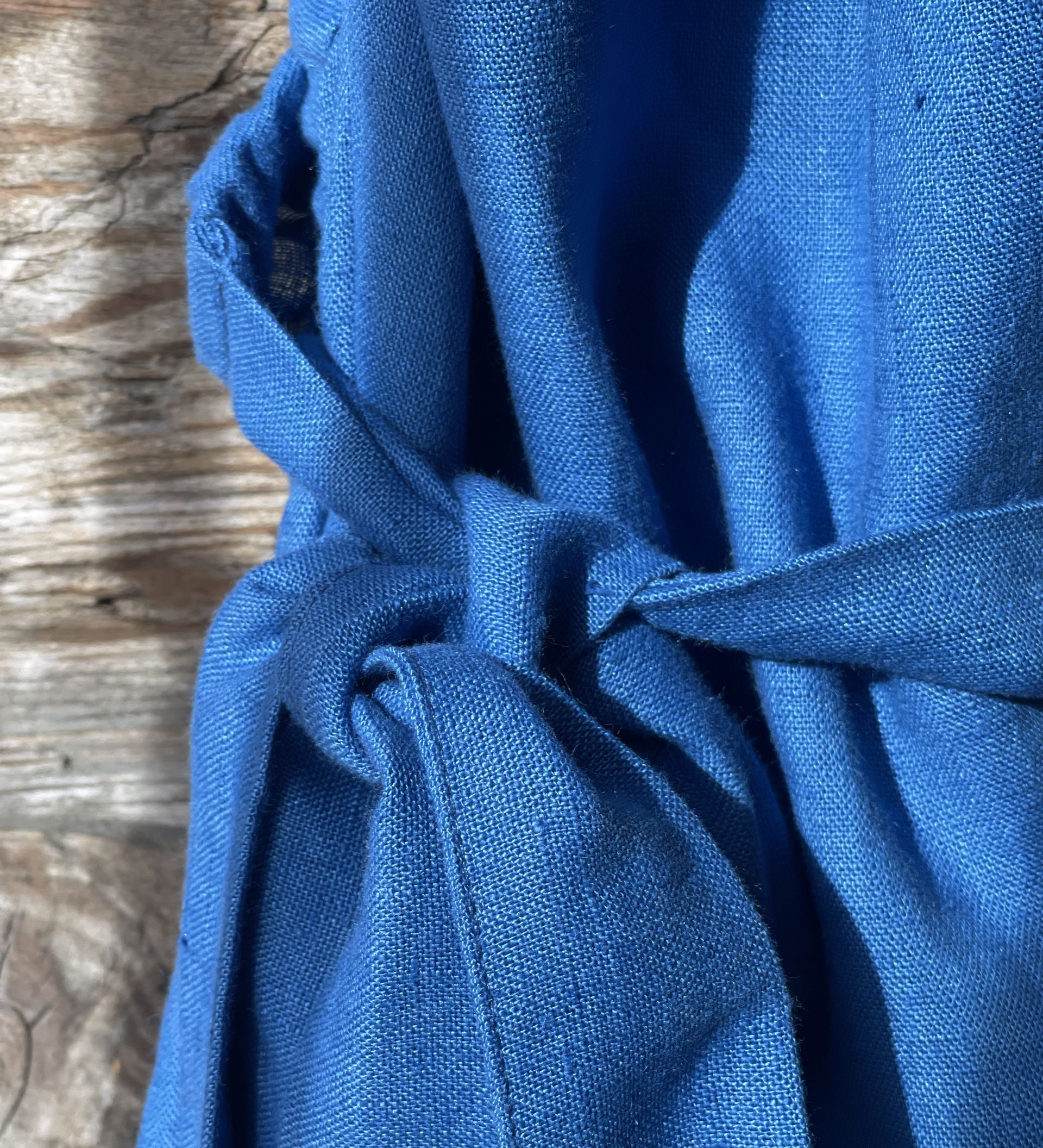 Pusnakts zila mīkstināta lina pirts kleita ar sasienamām jostas bantēm