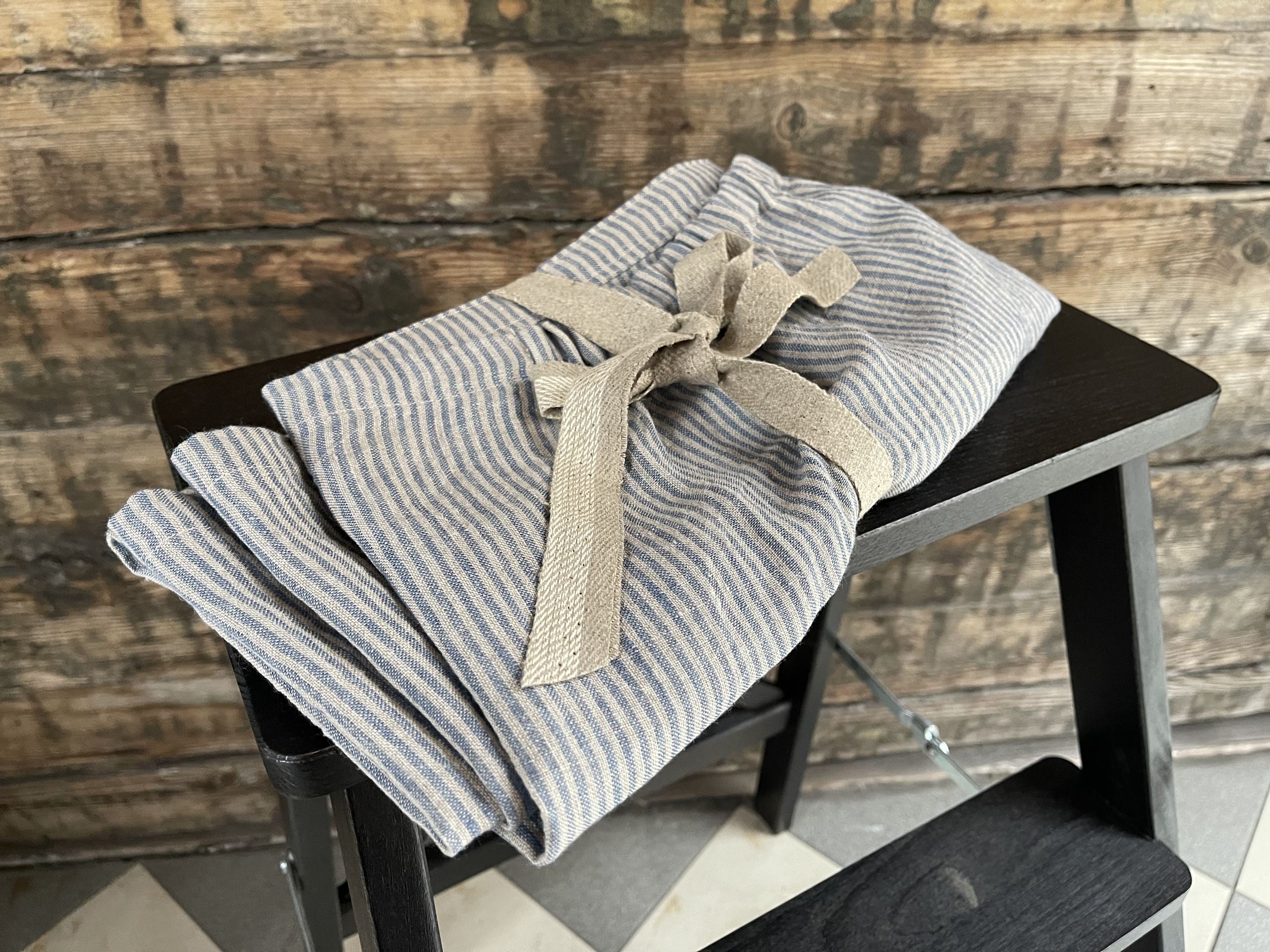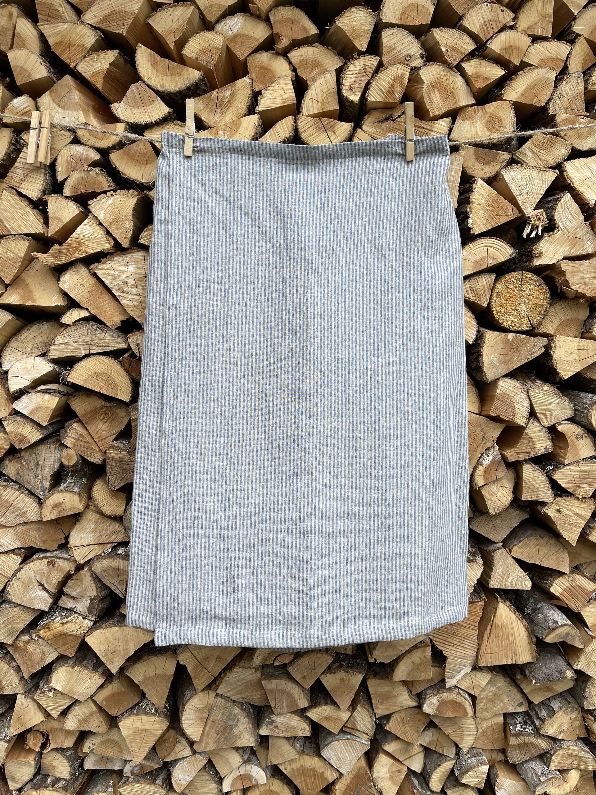 Gaiši zili/dabīgi pelēki svītroti, mīkstināta lina pirts svārki