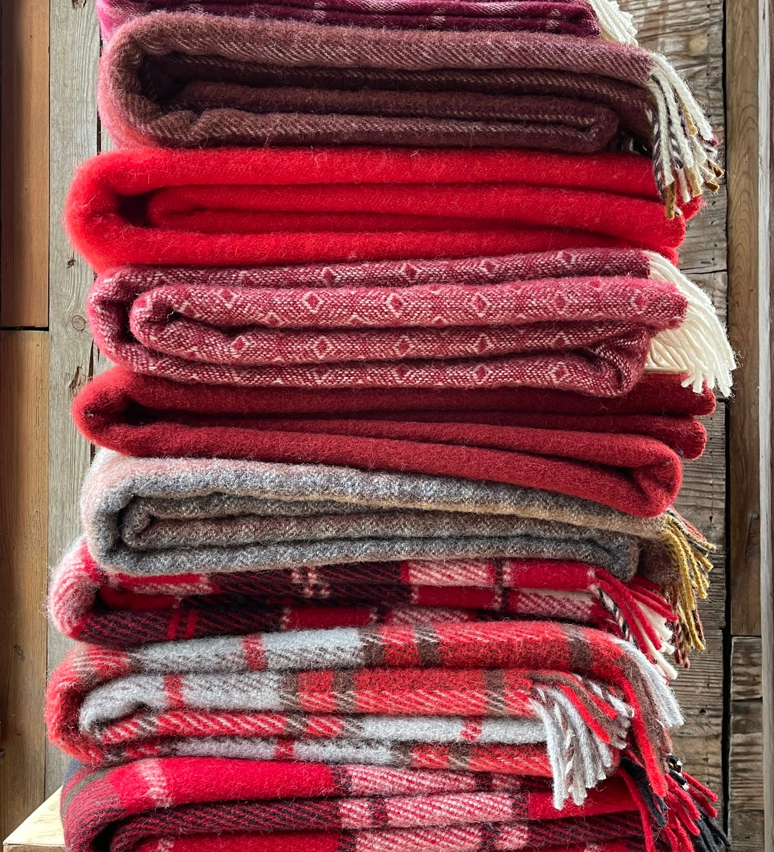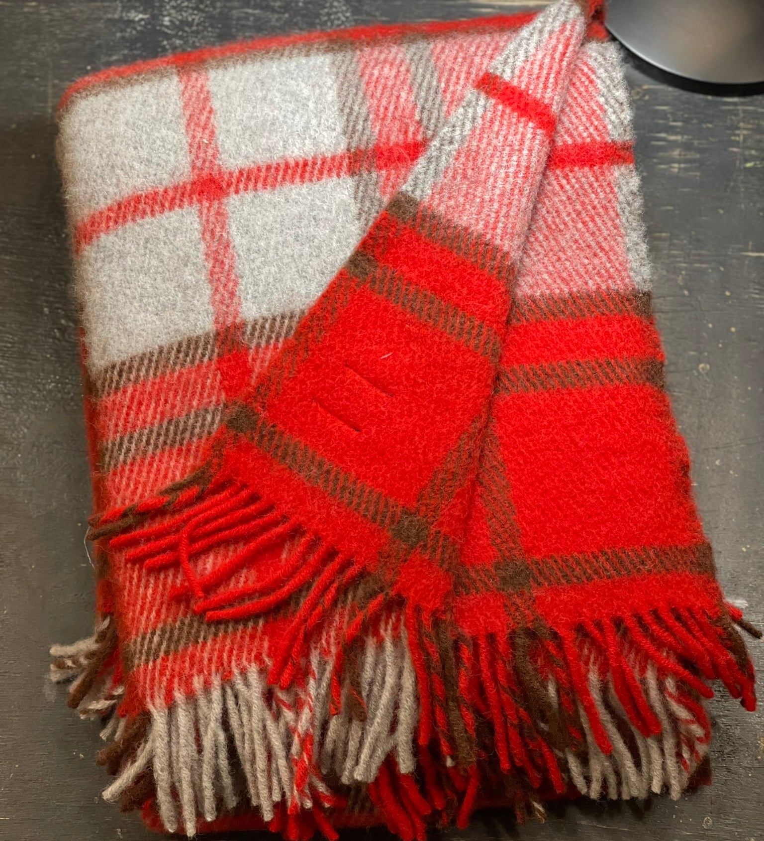 Sarkans/gaiši pelēki klasiski rūtains aitas vilnas pleds, dažādi izmēri