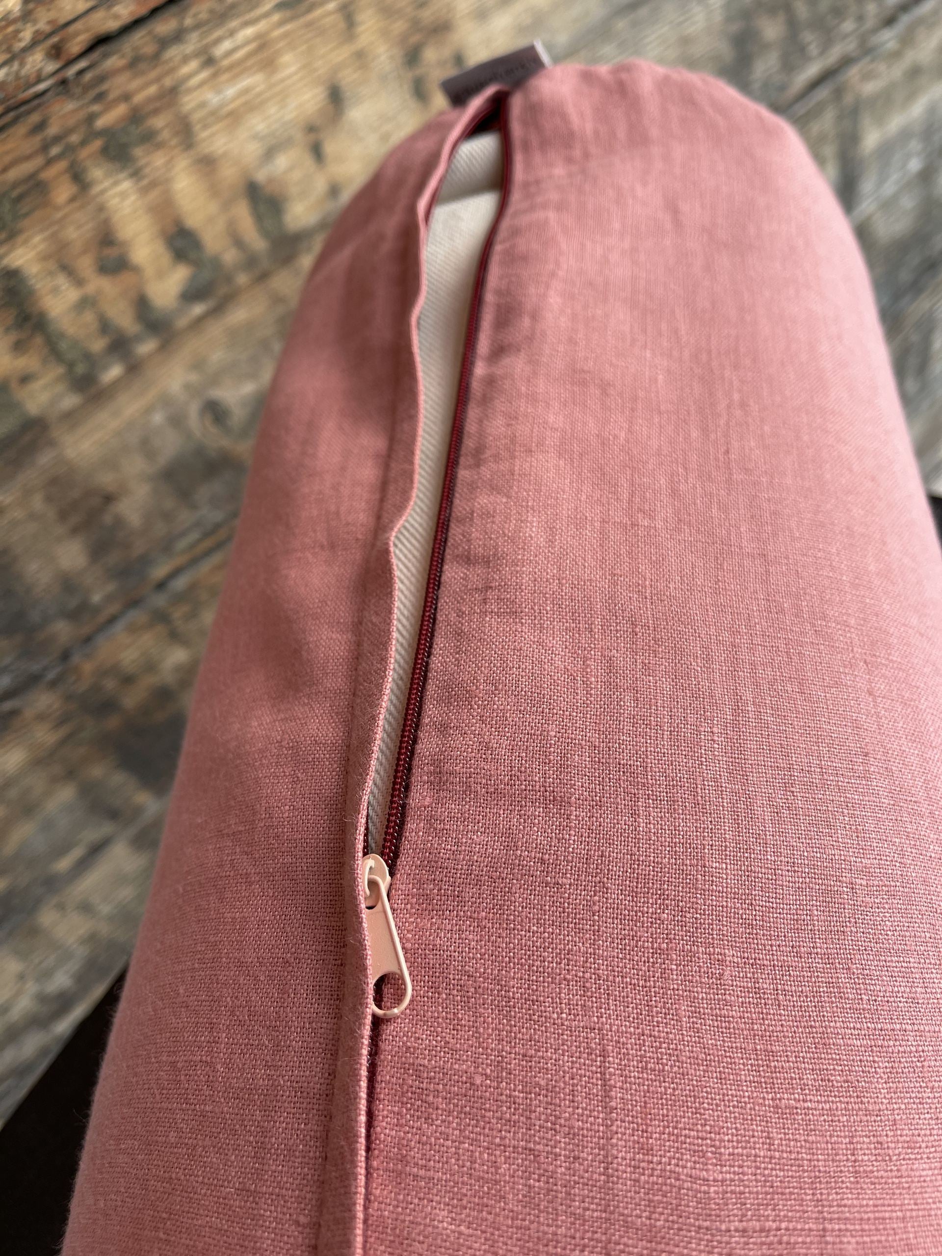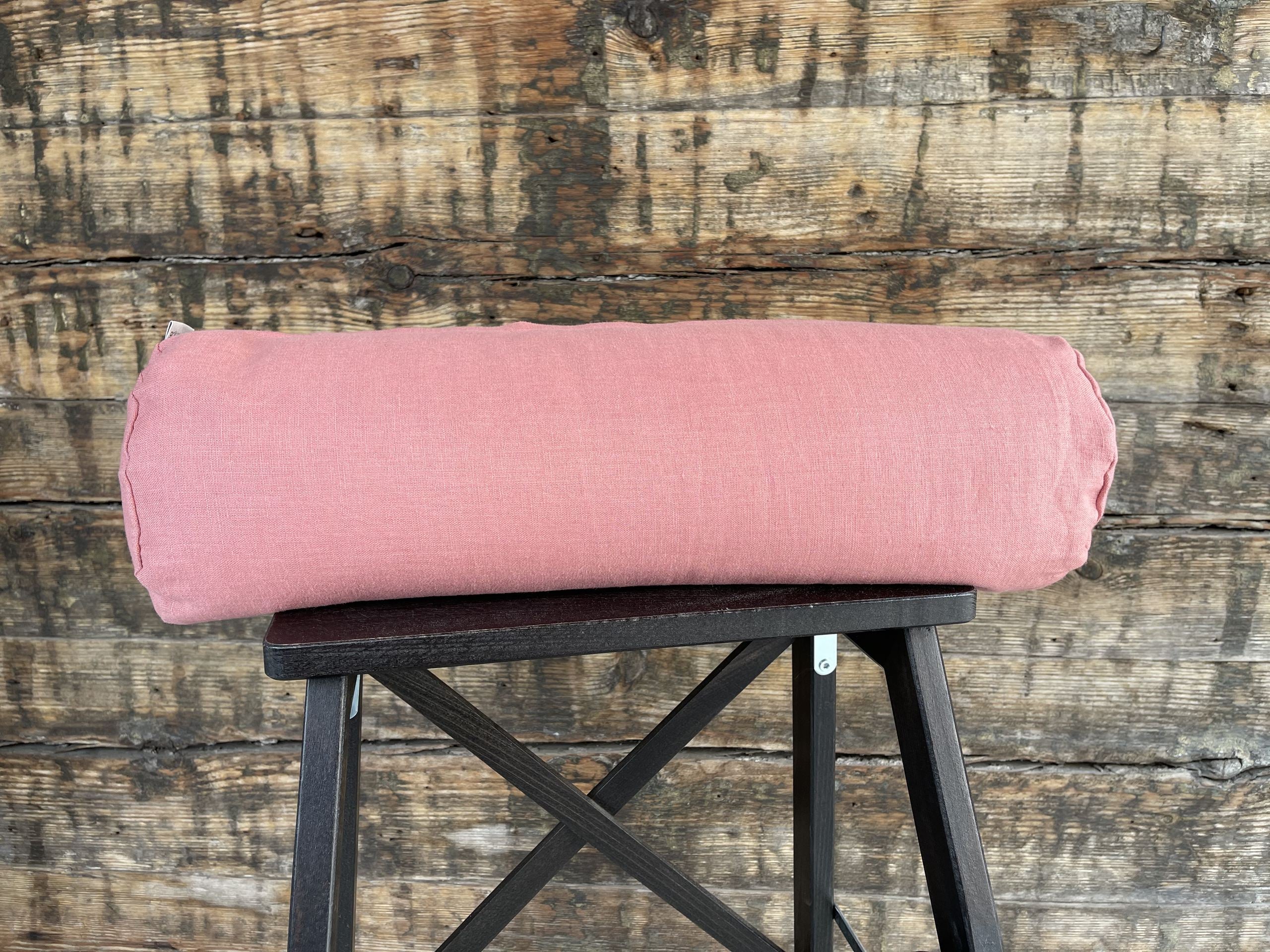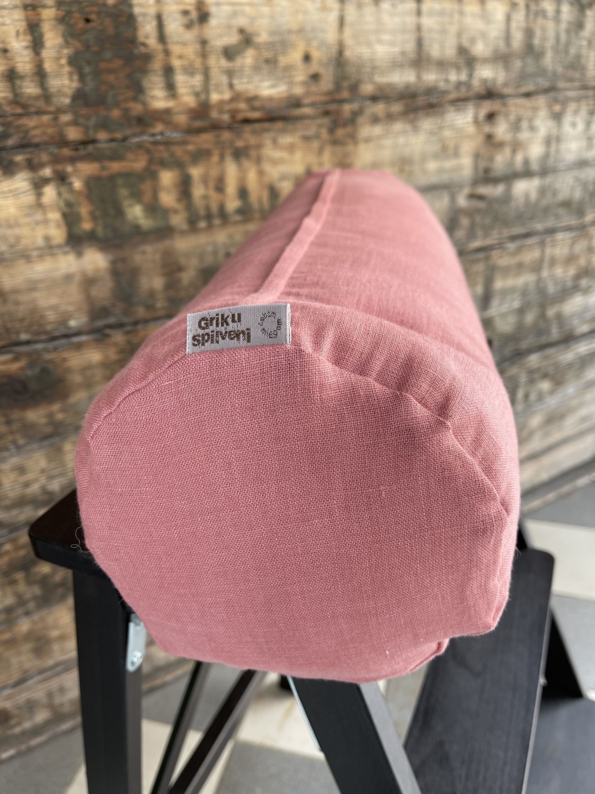 Koraļļu rozā, mīkstināta lina lielais griķu spilvens - rullītis - pagalvītis