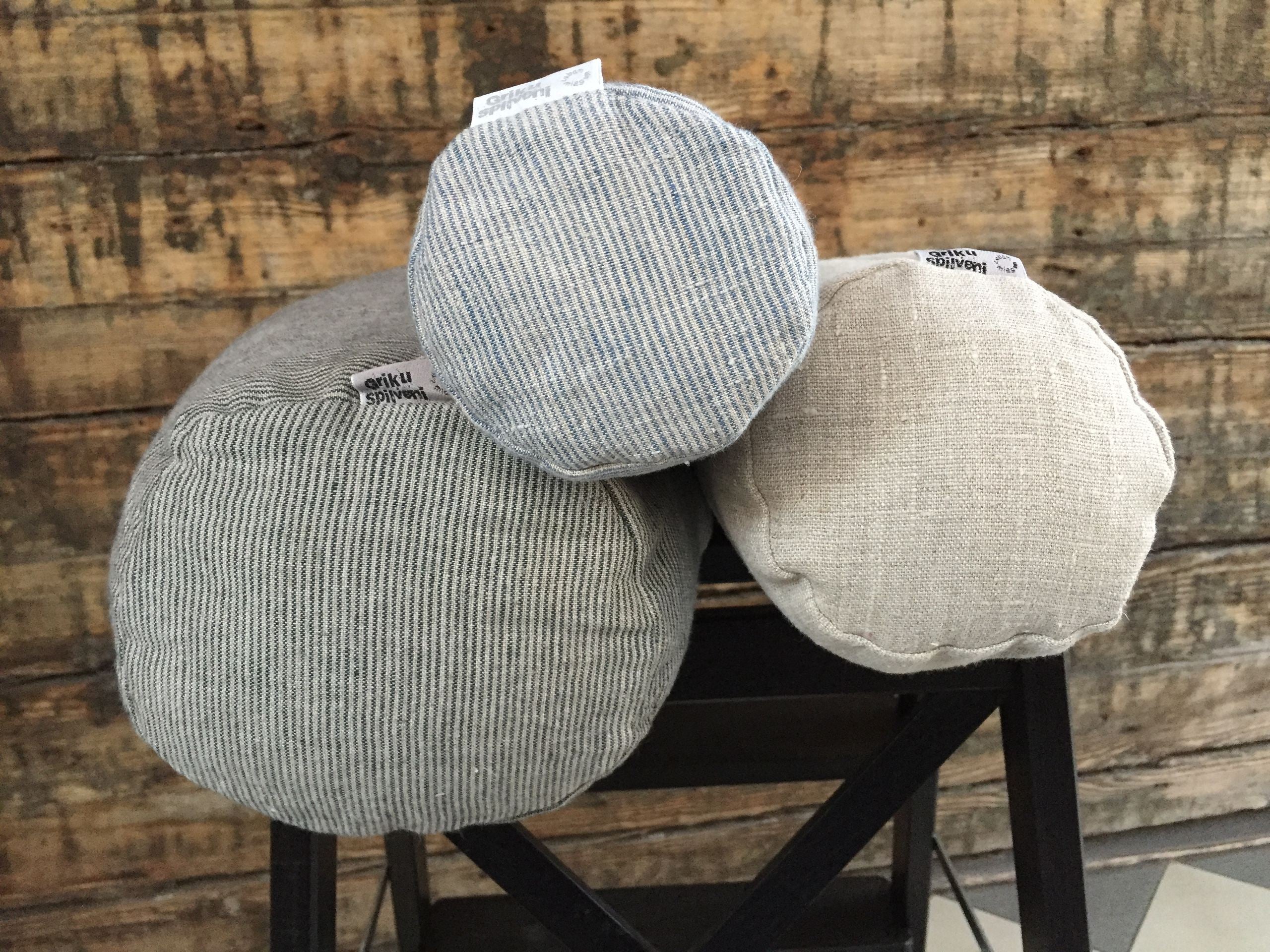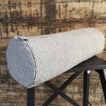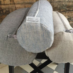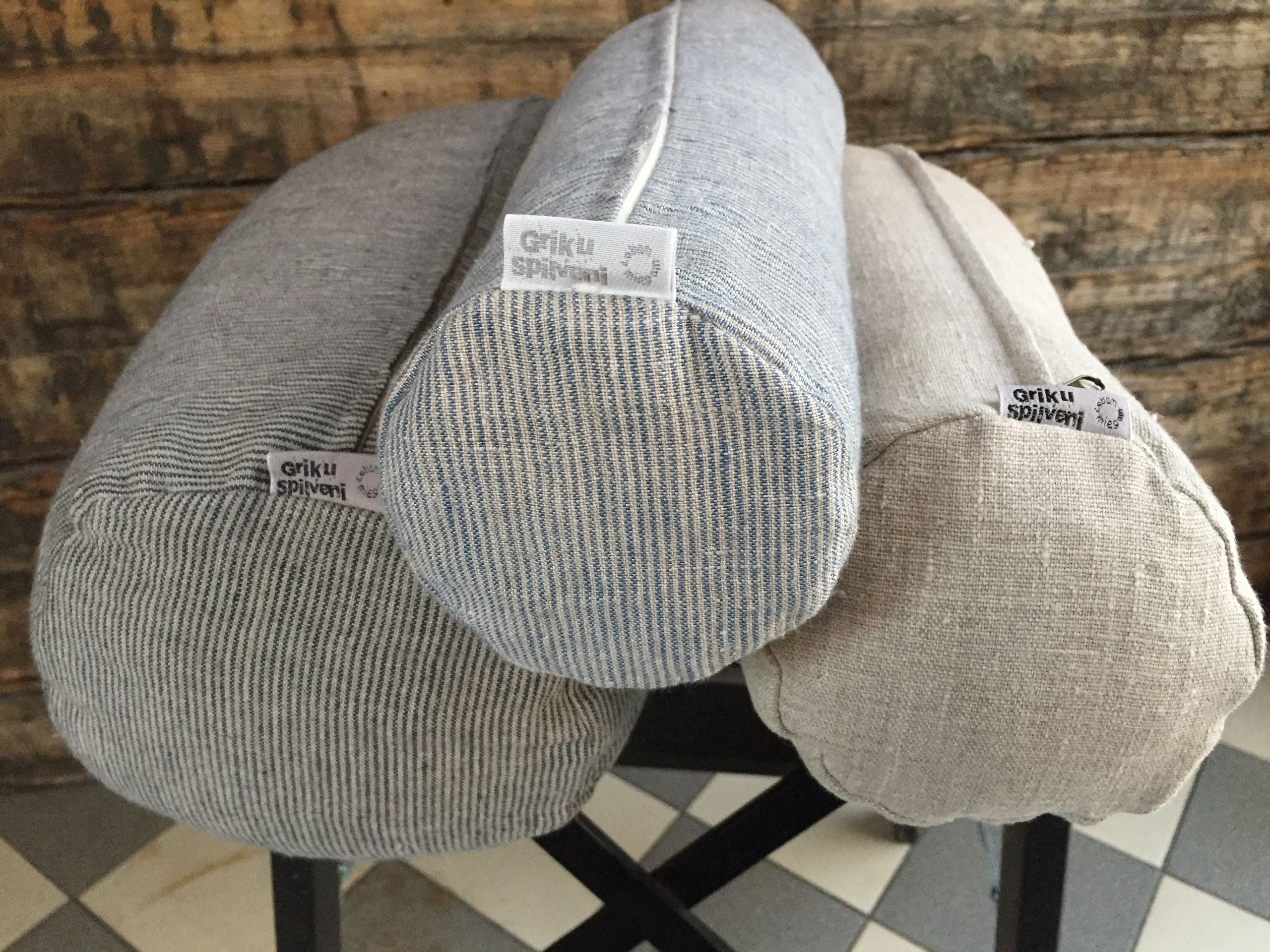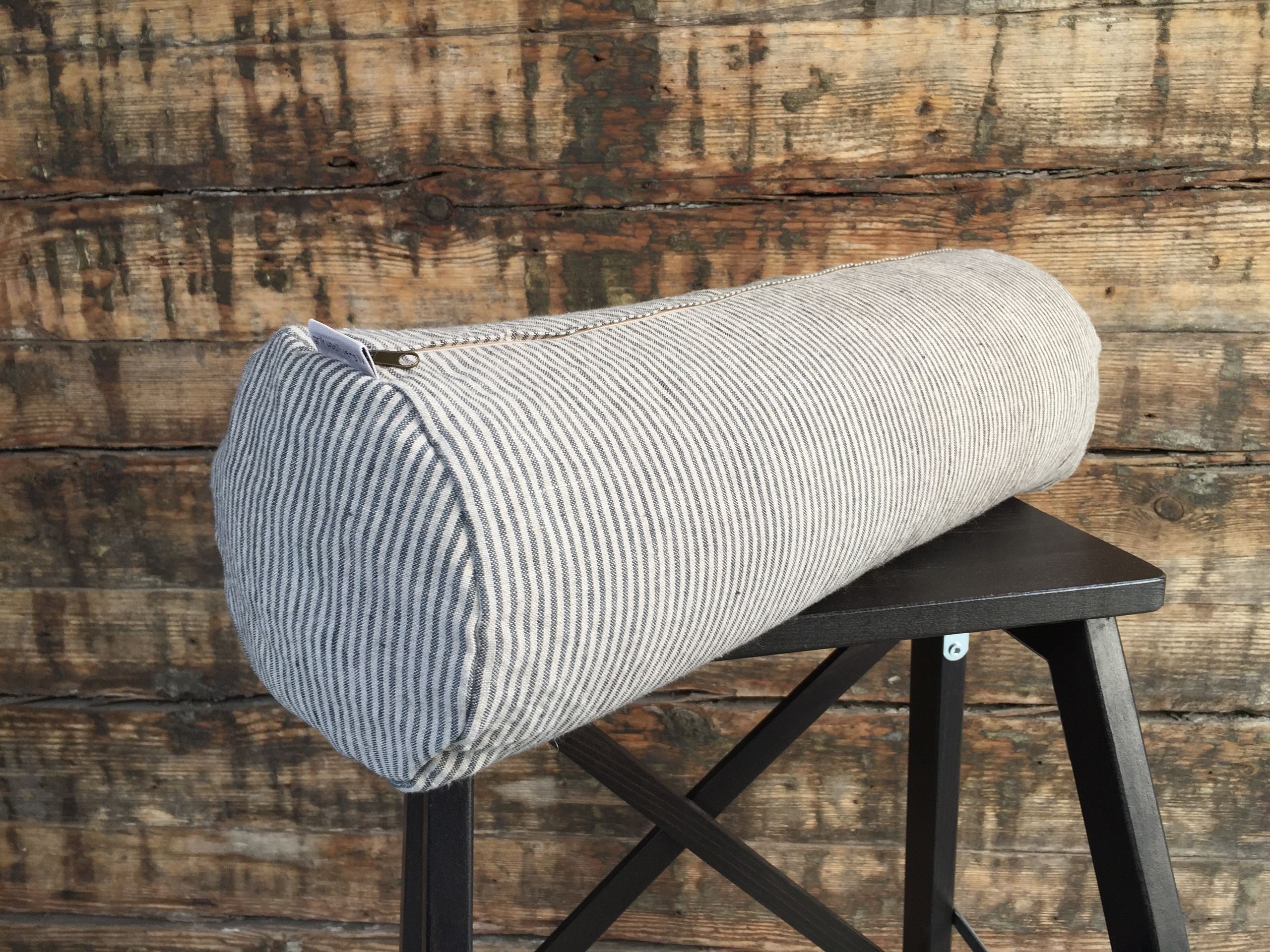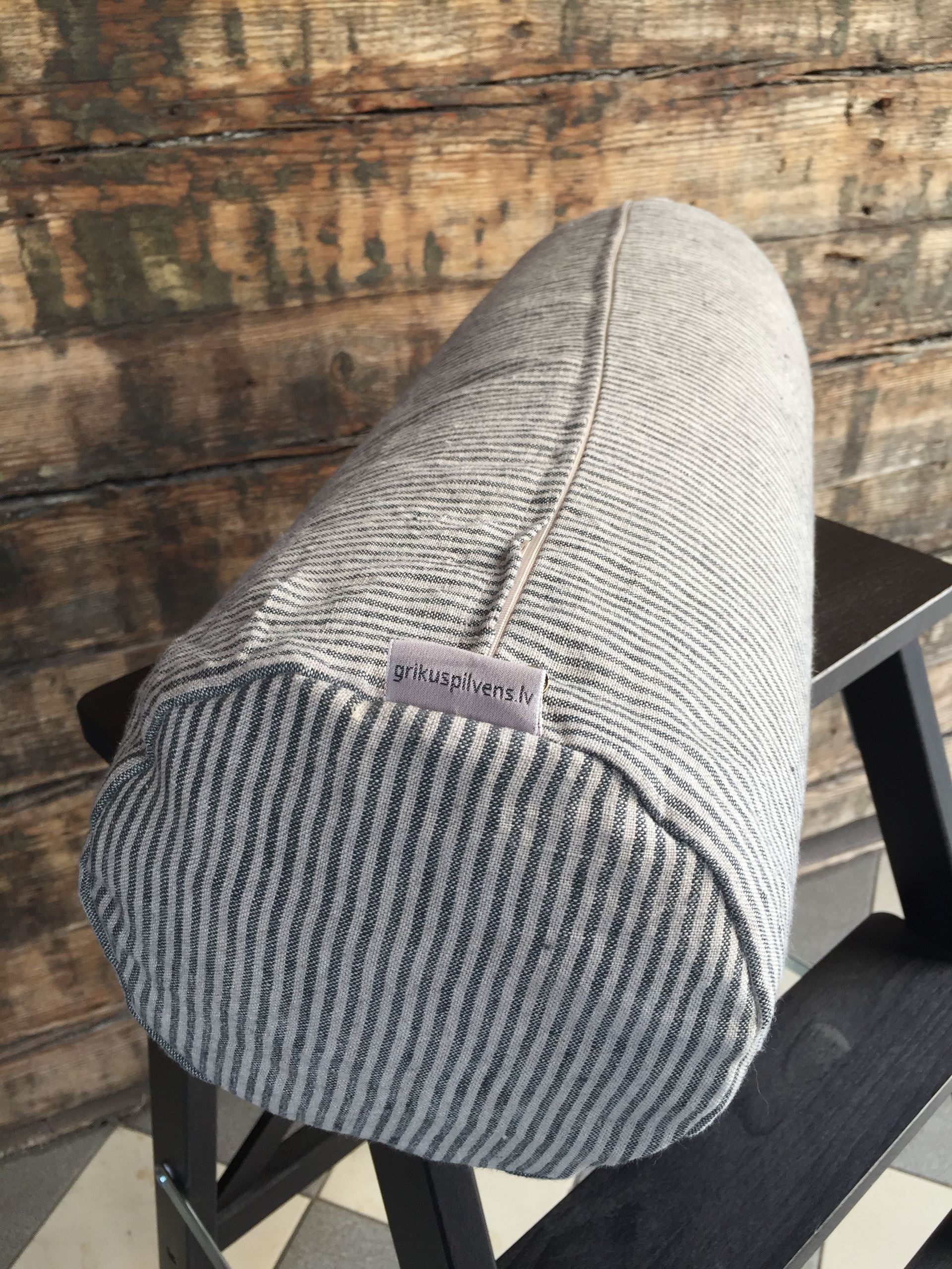 Tumši pelēka/dabīgi pelēka, svītraina, mīkstināta lina lielais griķu spilvens - rullītis - pagalvītis