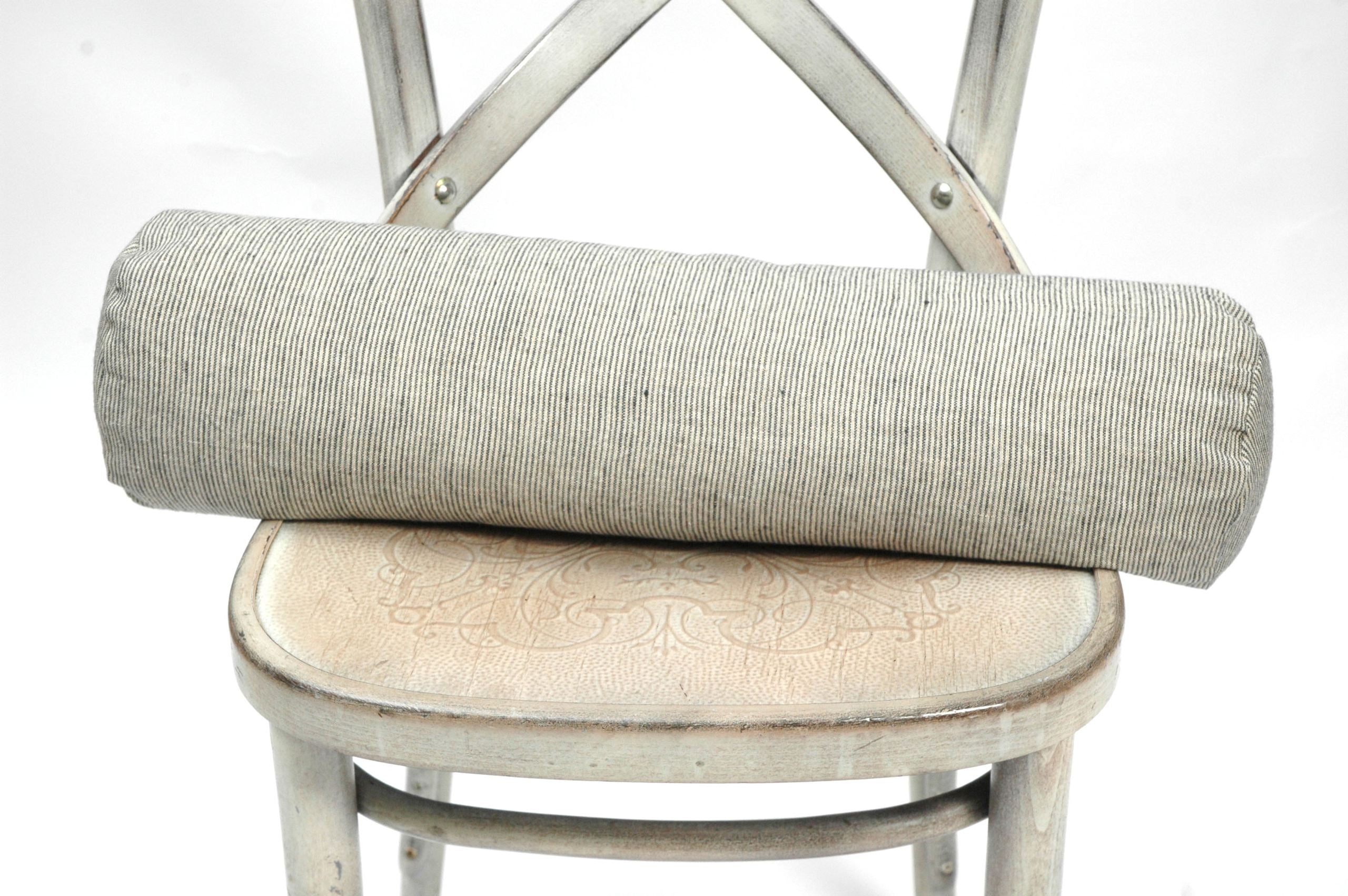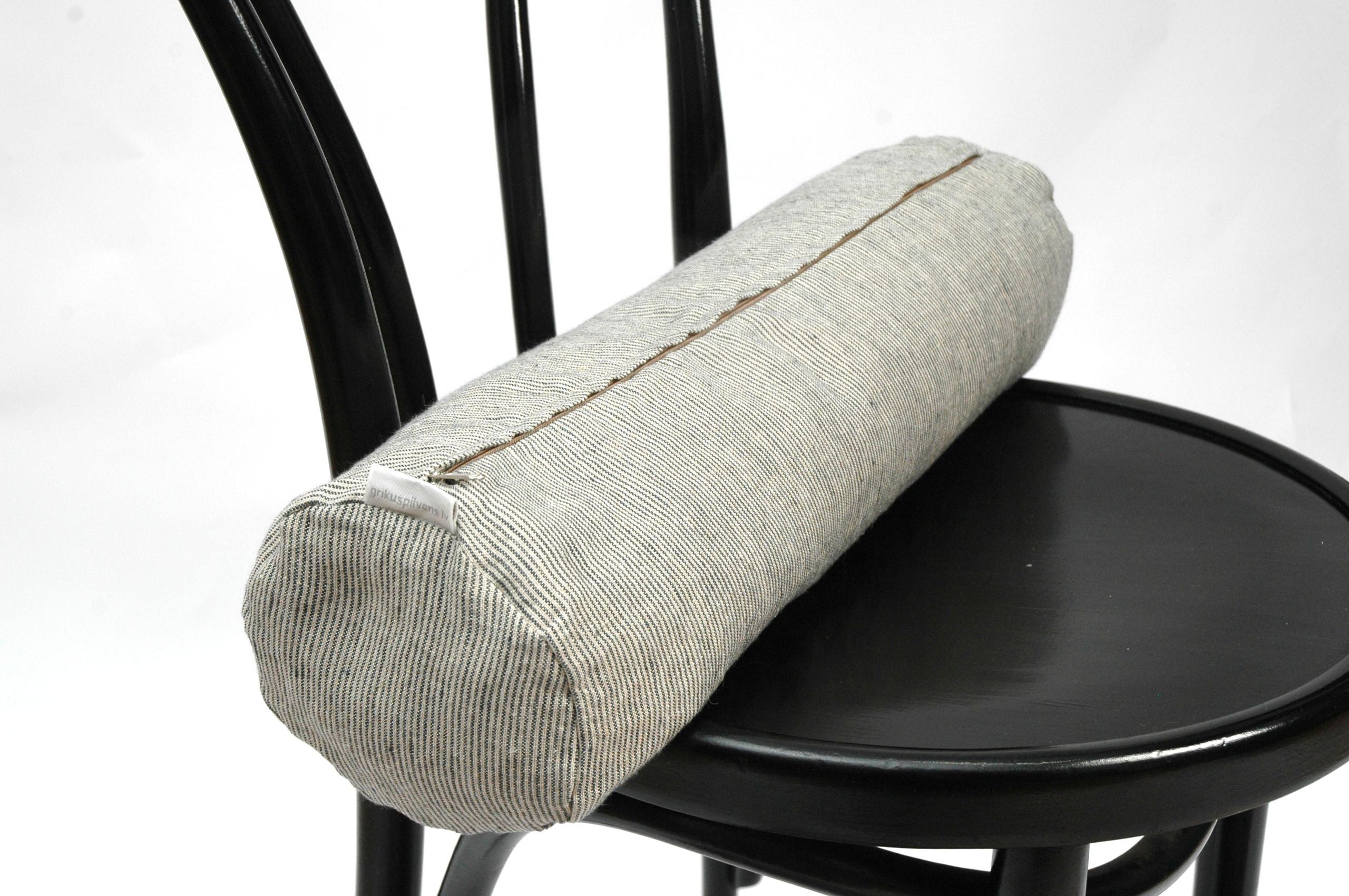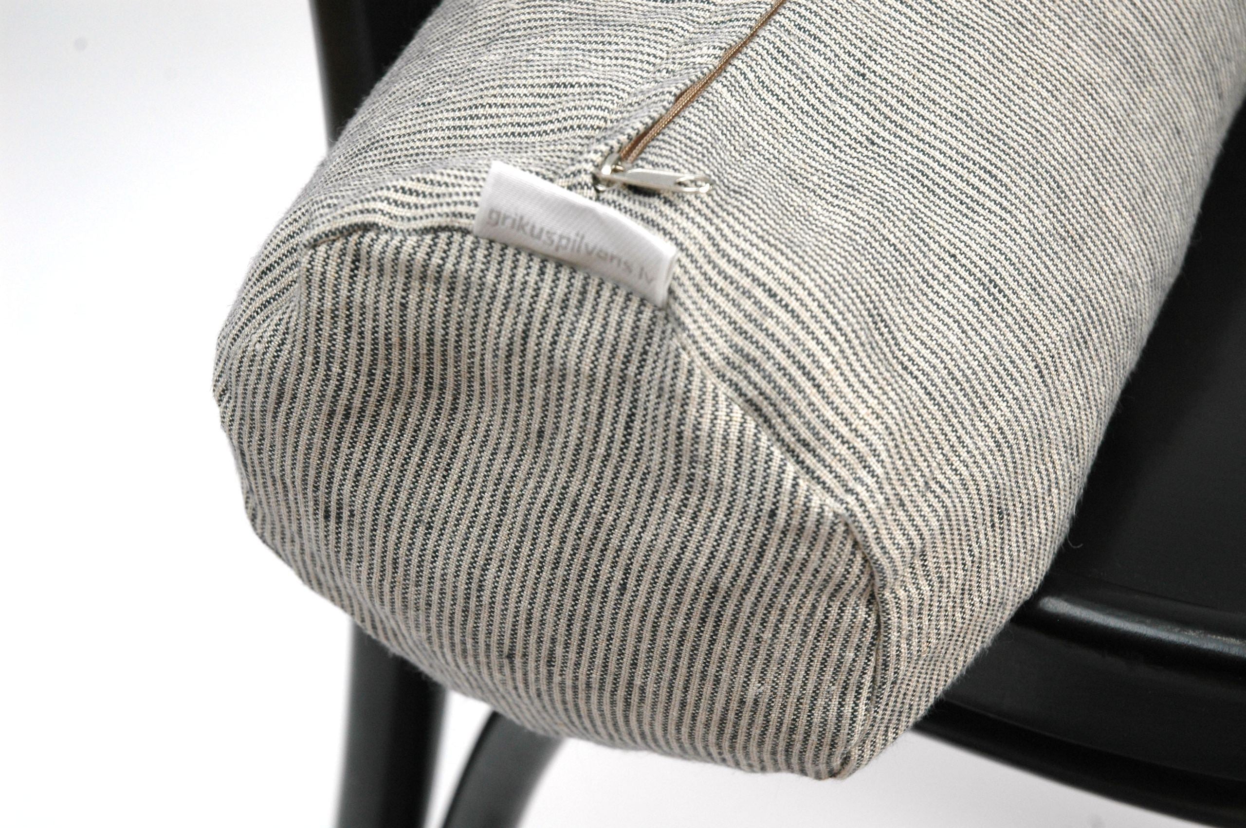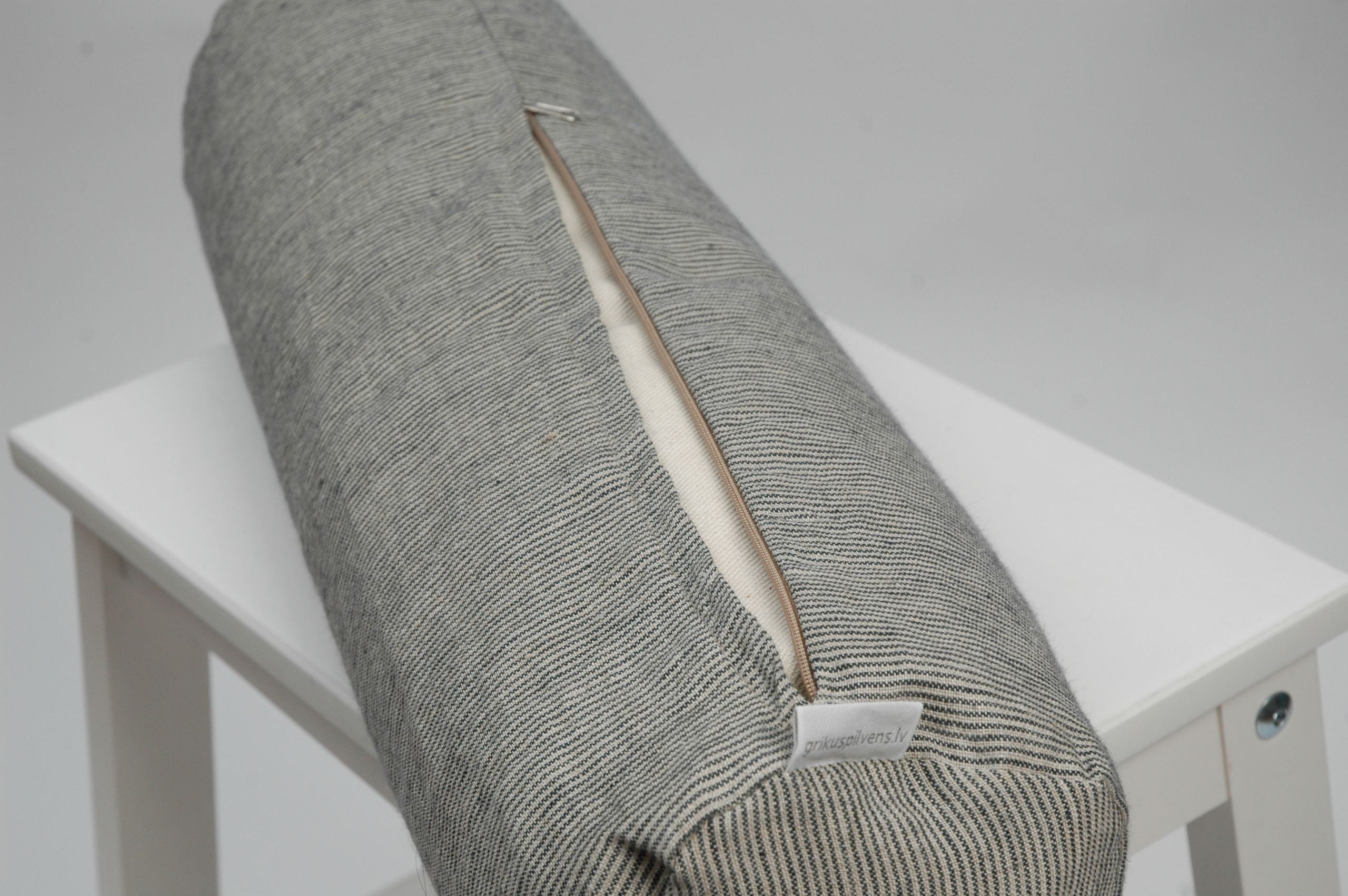 Tumši pelēks/dabīgi pelēks svītraina lina vidējais griķu spilvens - rullītis - pagalvītis