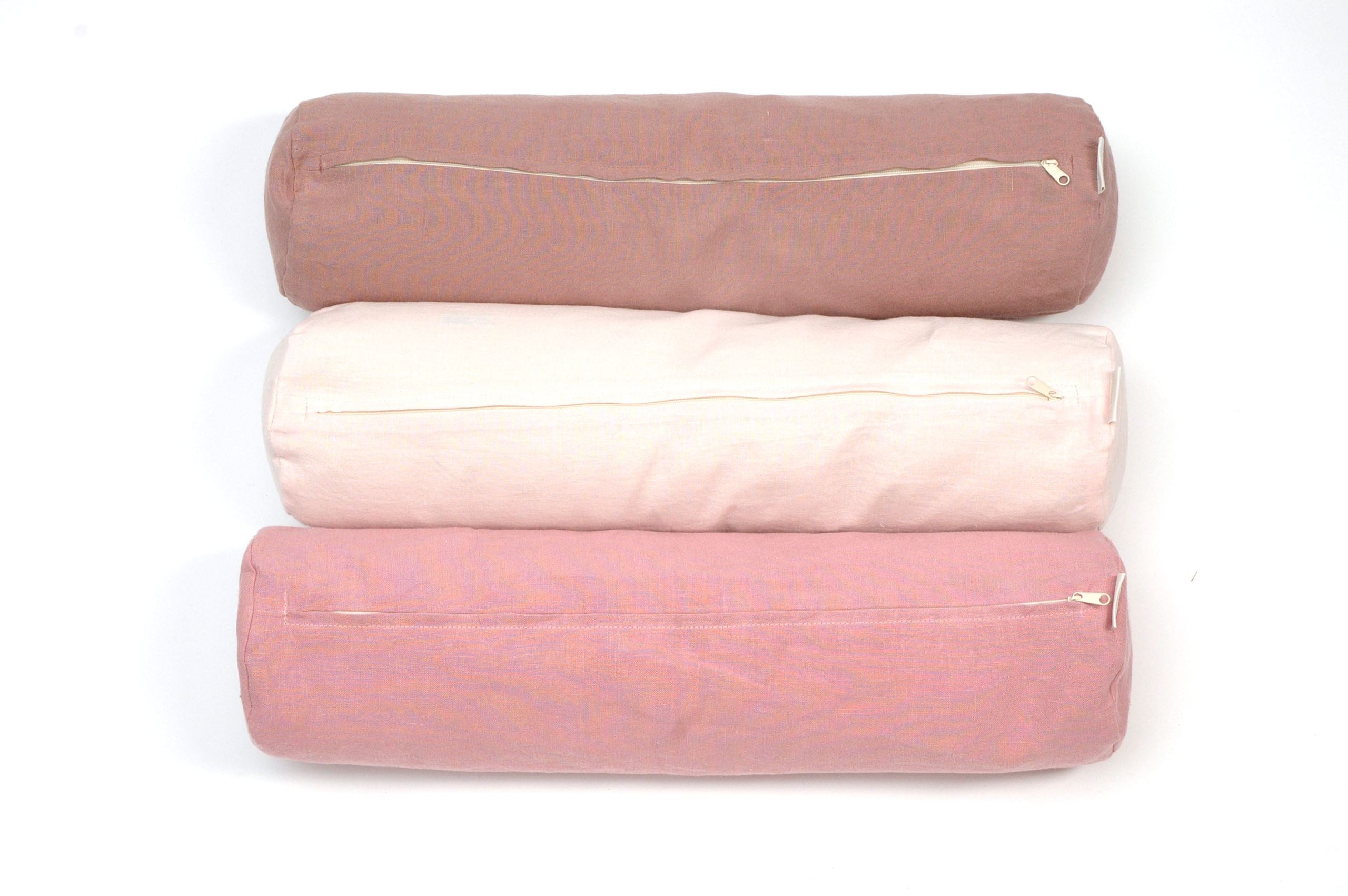 Tumši vecrozā mīkstināta lina vidējais griķu spilvens - rullītis - pagalvītis