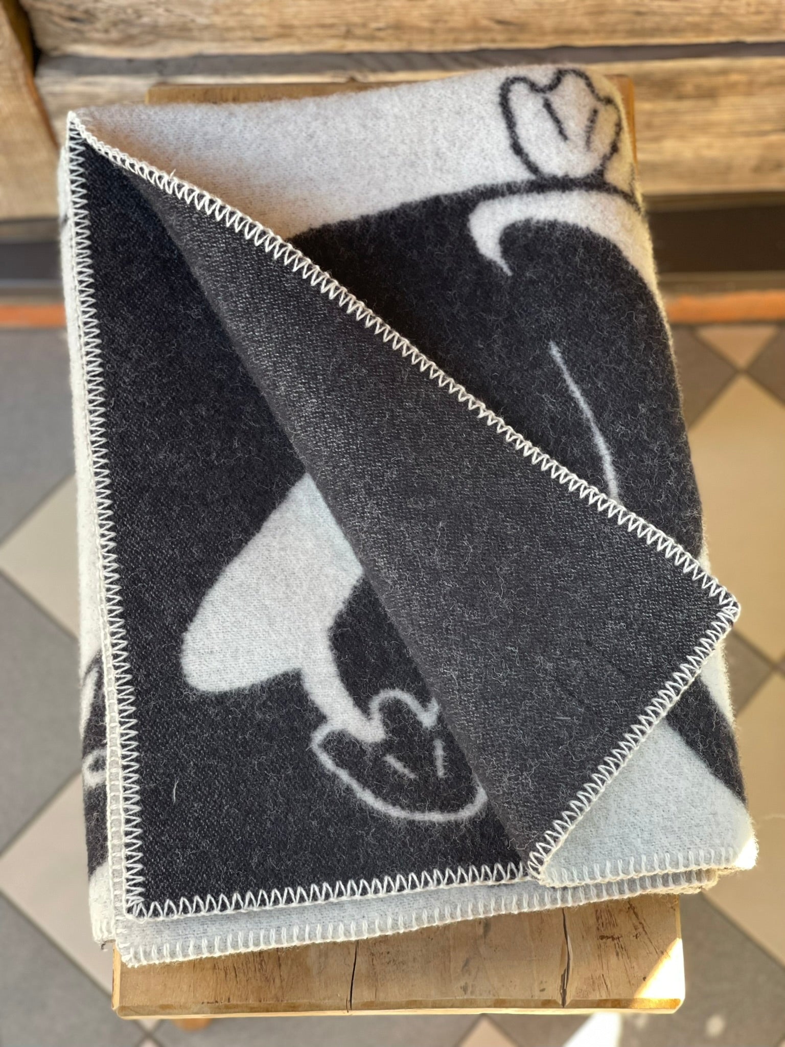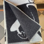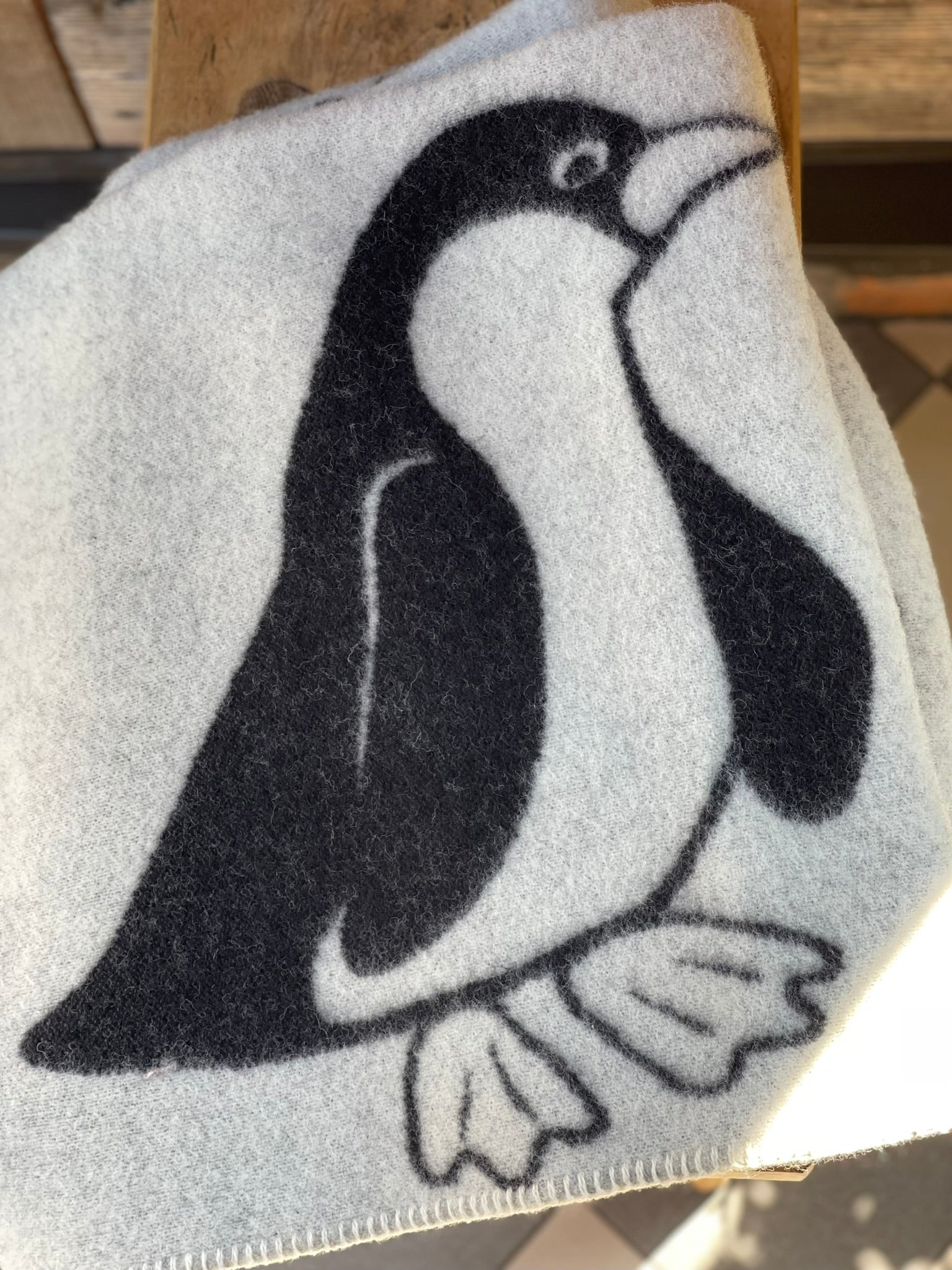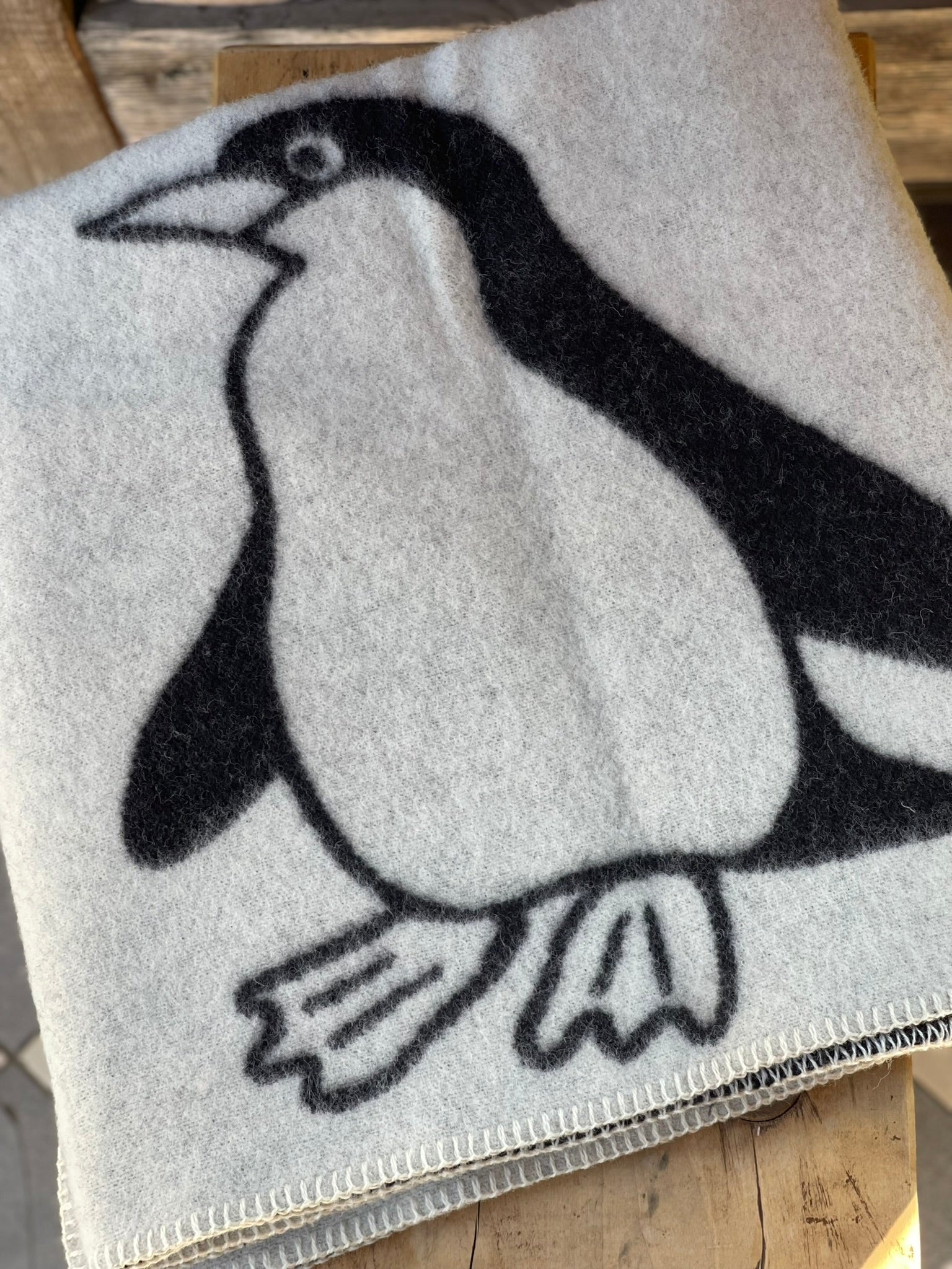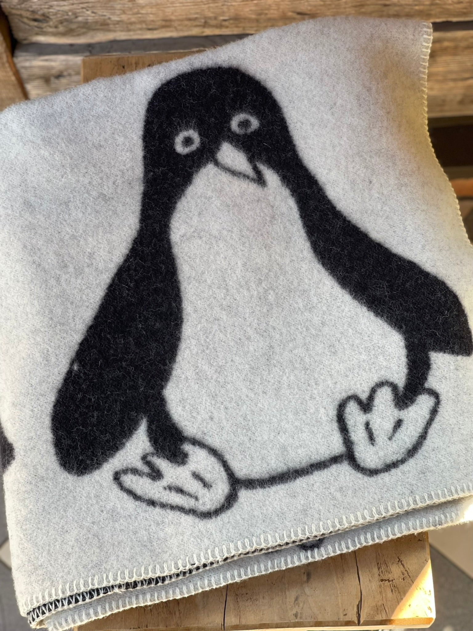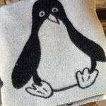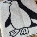 Melni/balta bērnu 100% aitas vilnas sedziņa ar PINGVĪNIEM 100x140cm