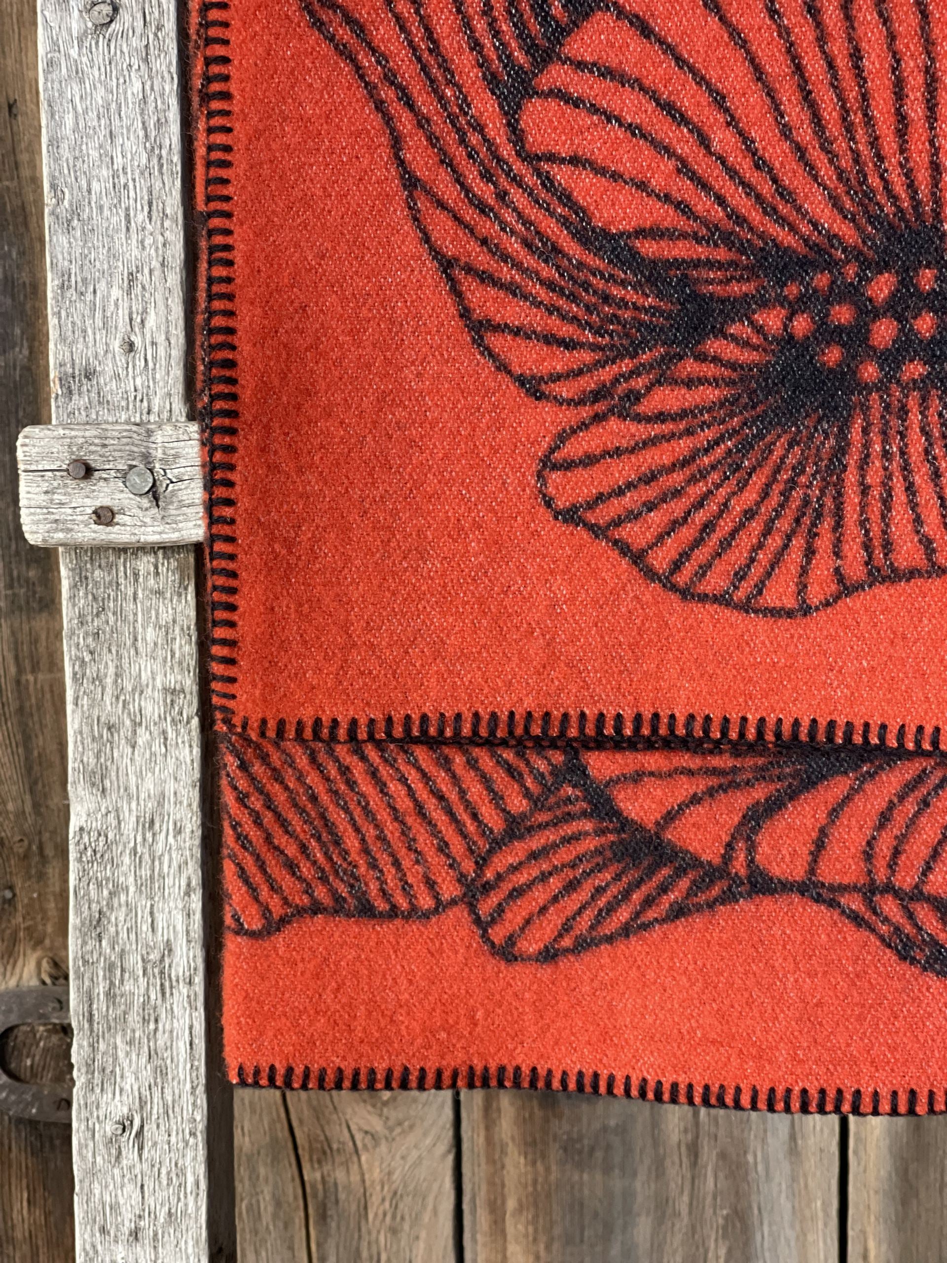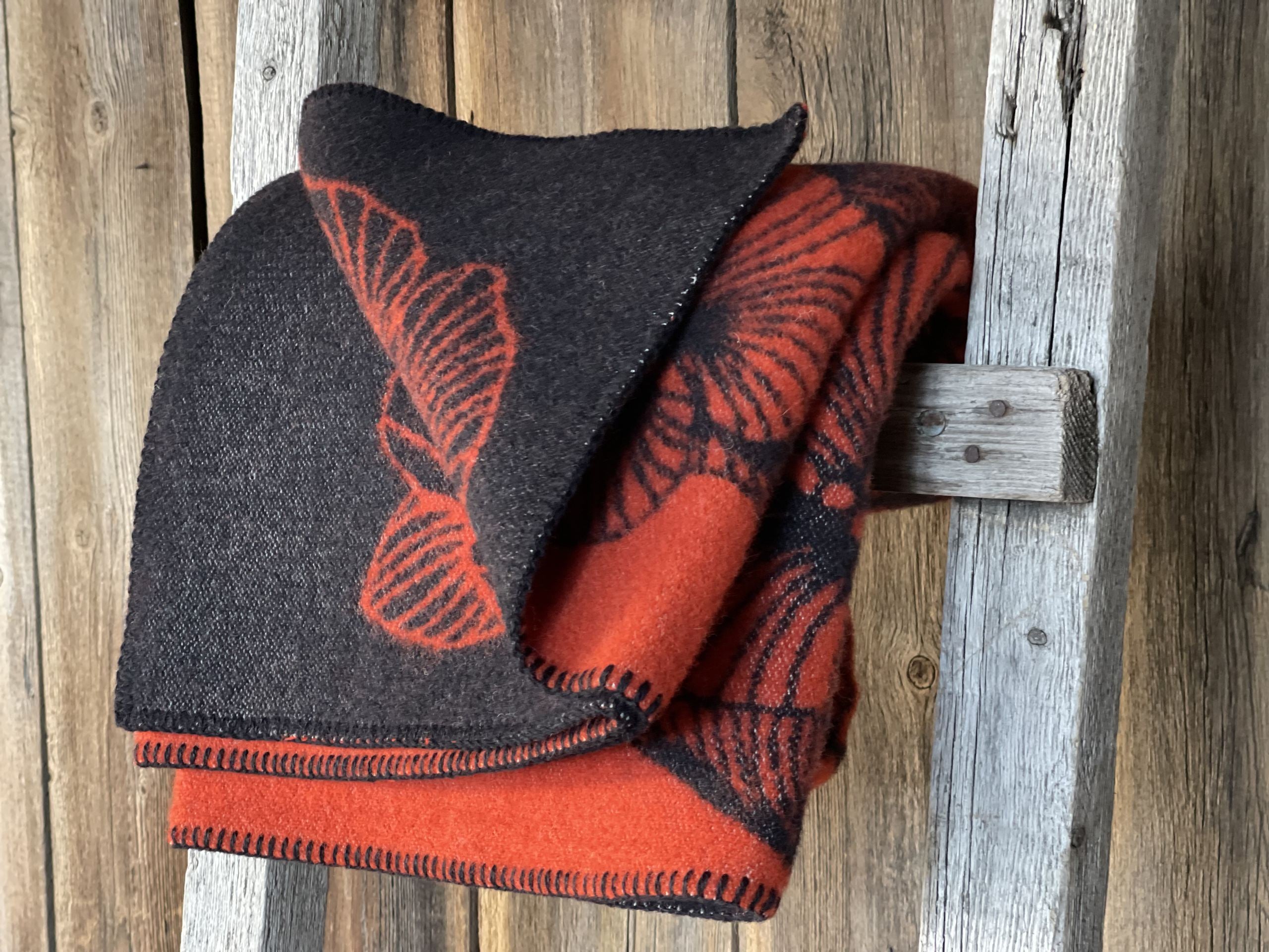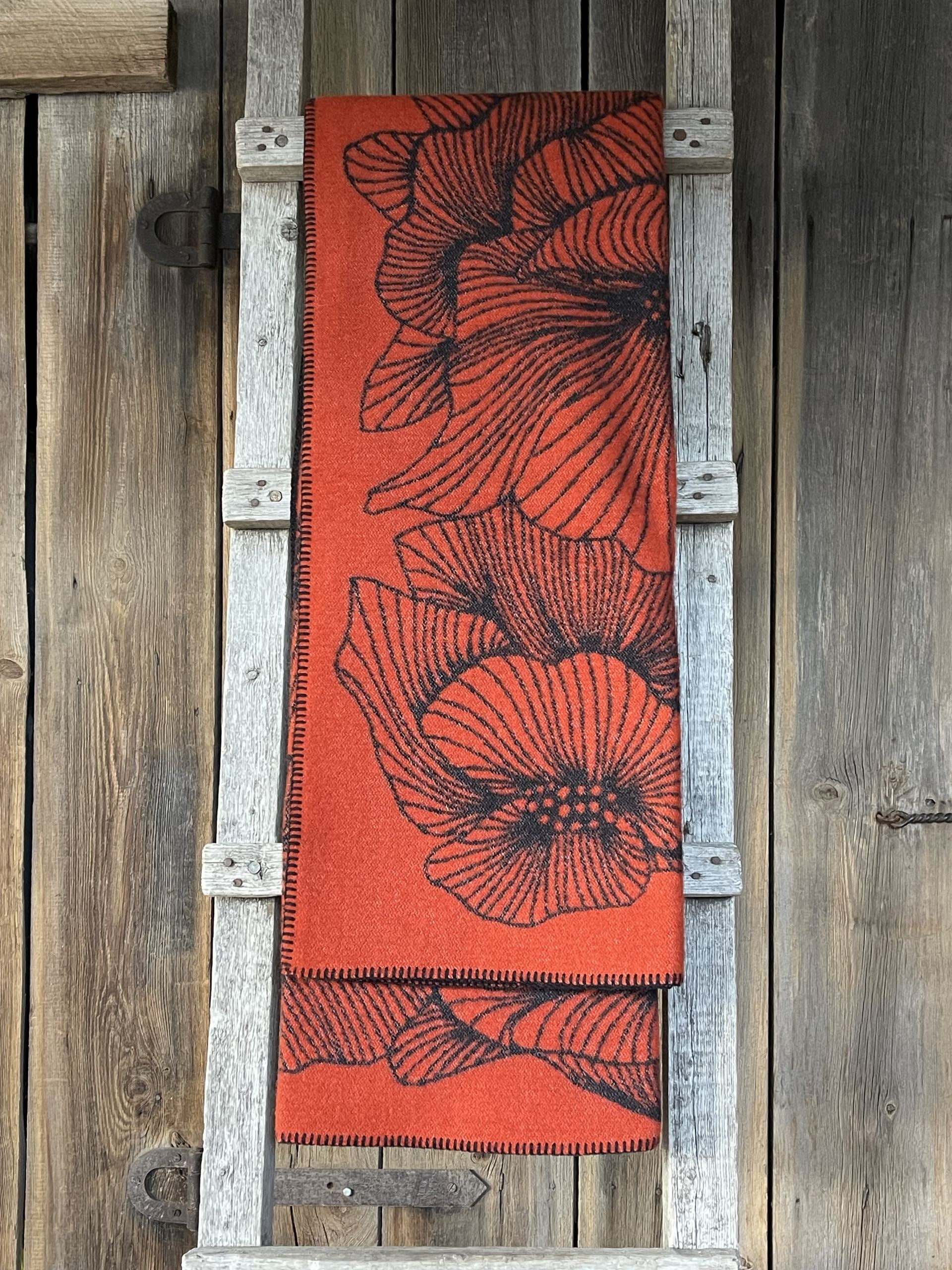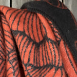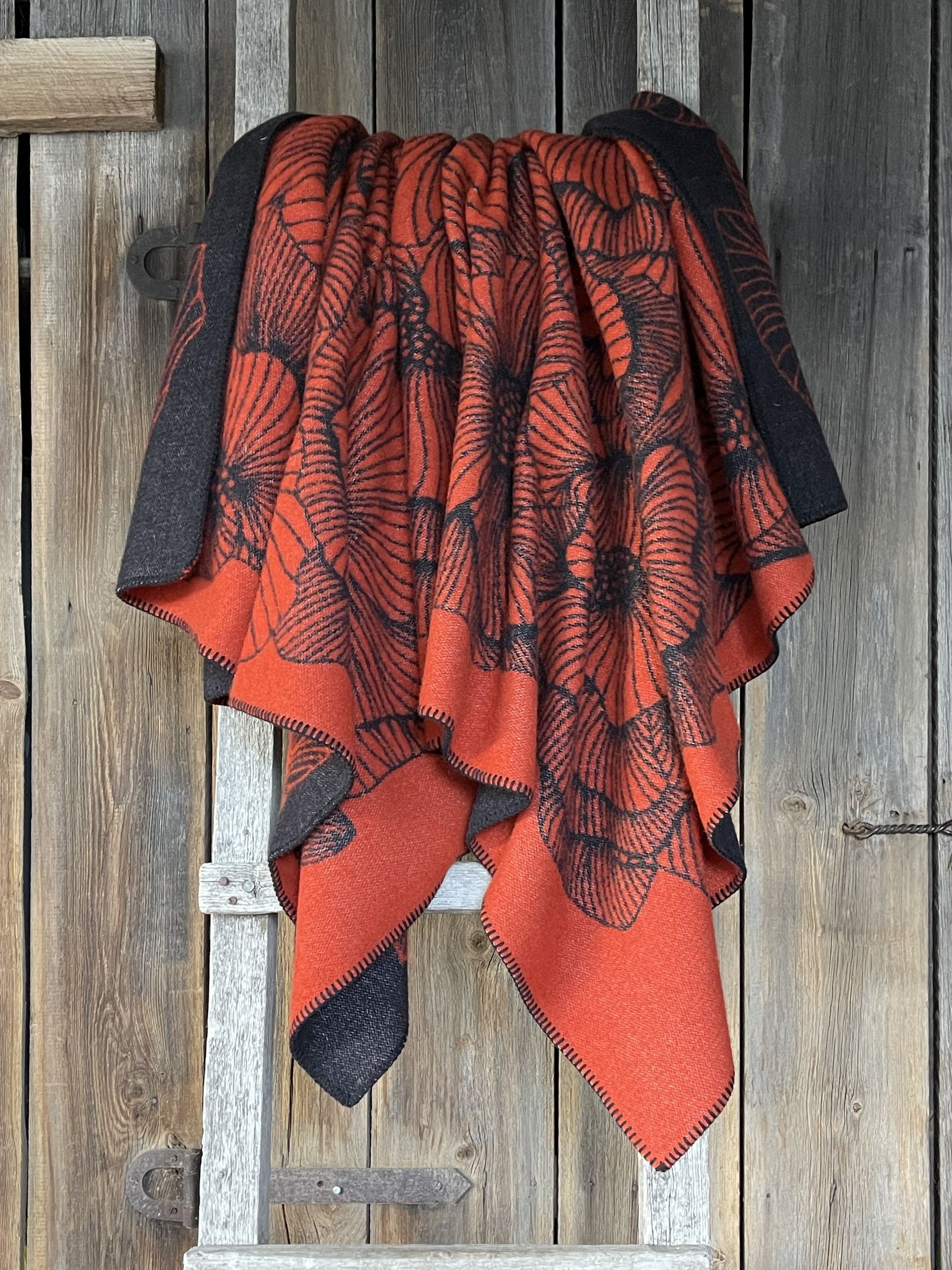 Oranža/melna toņa aitas vilnas sega ar ziedu rakstu