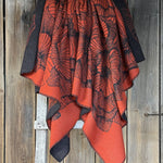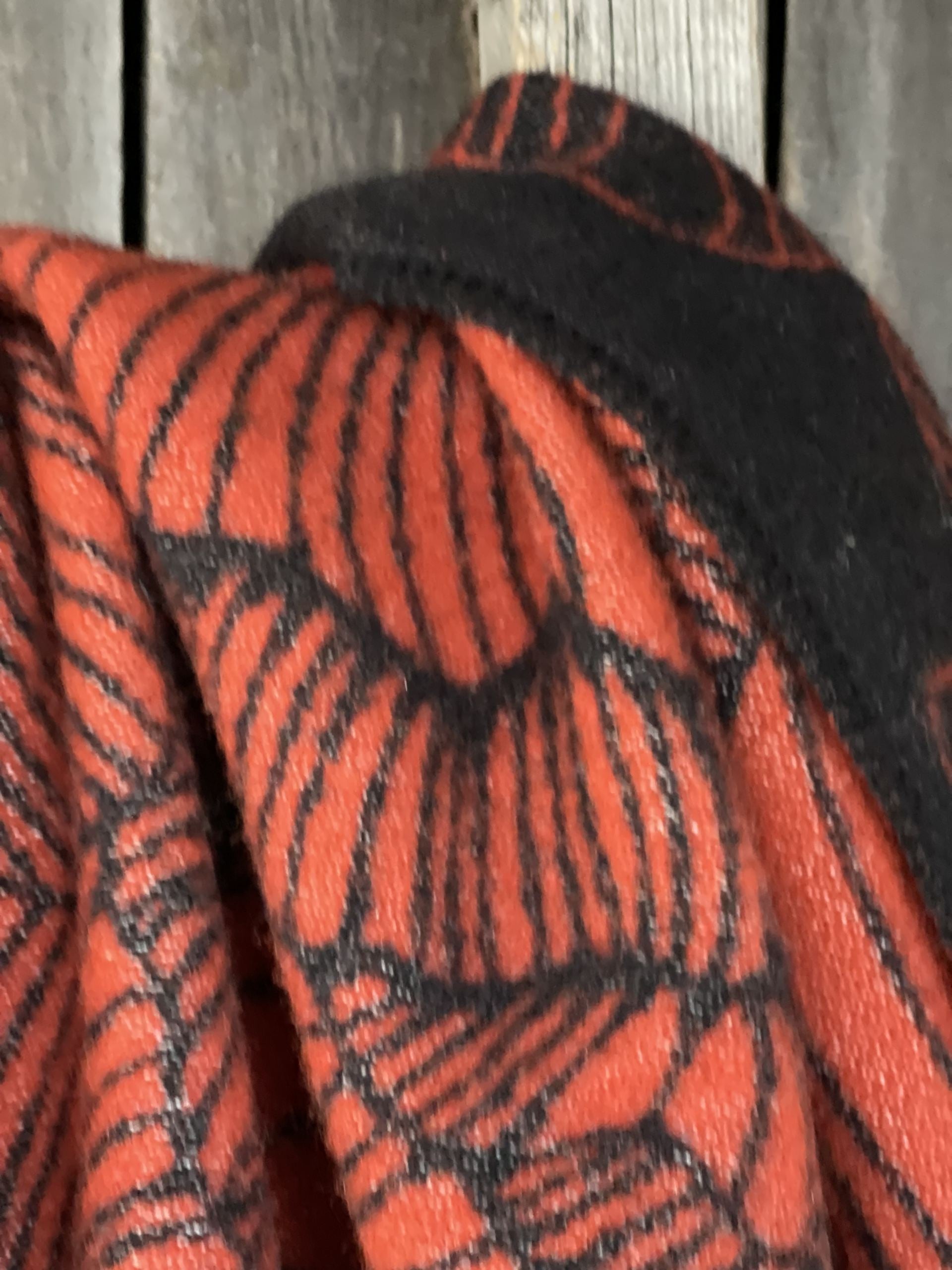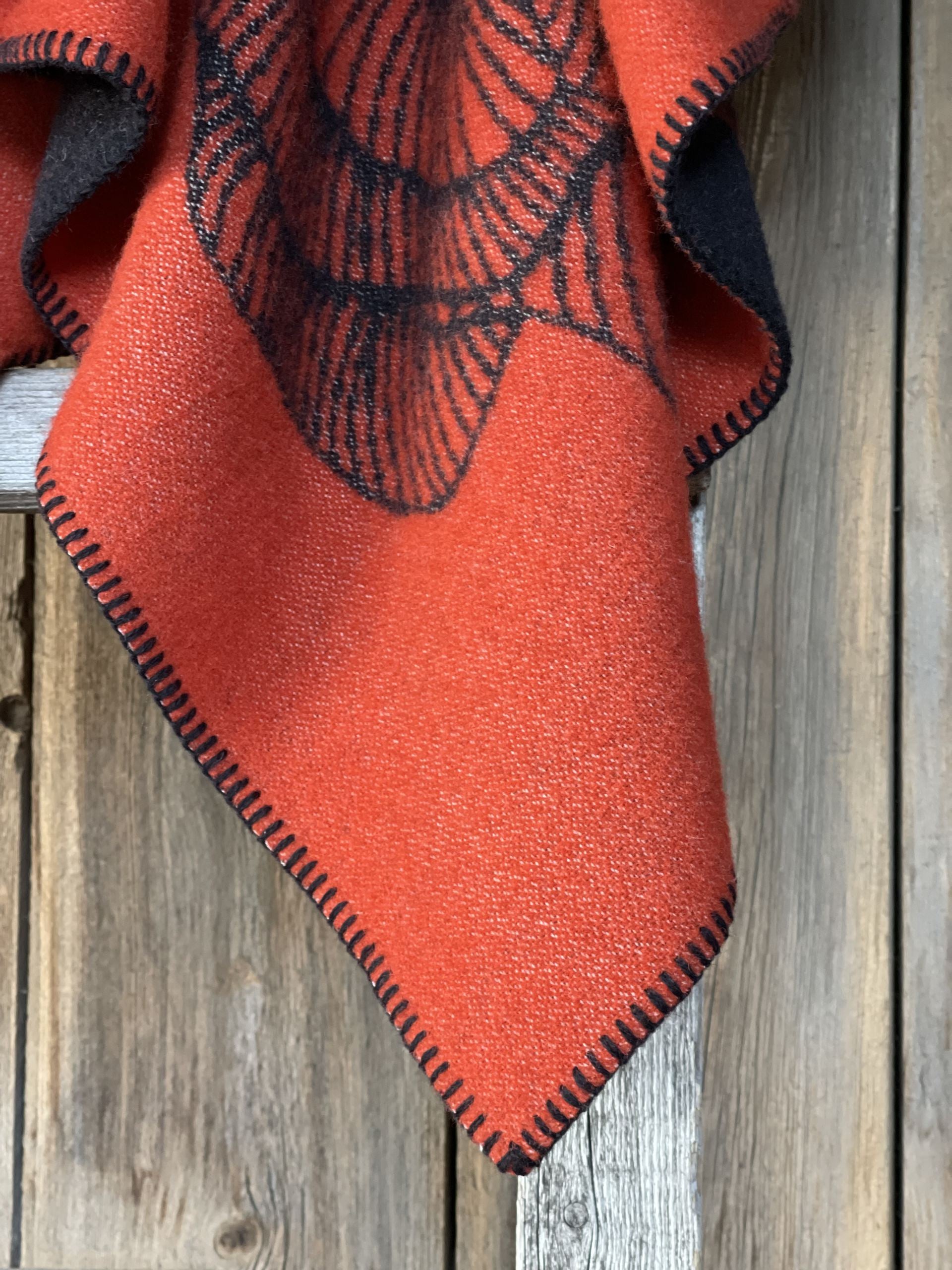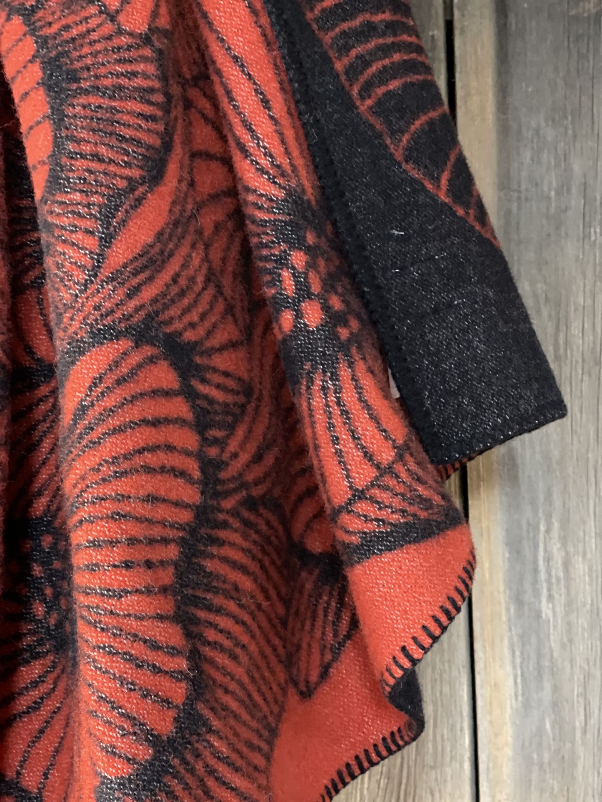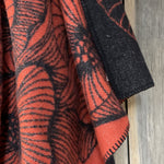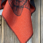 Oranža/melna toņa aitas vilnas sega ar ziedu rakstu