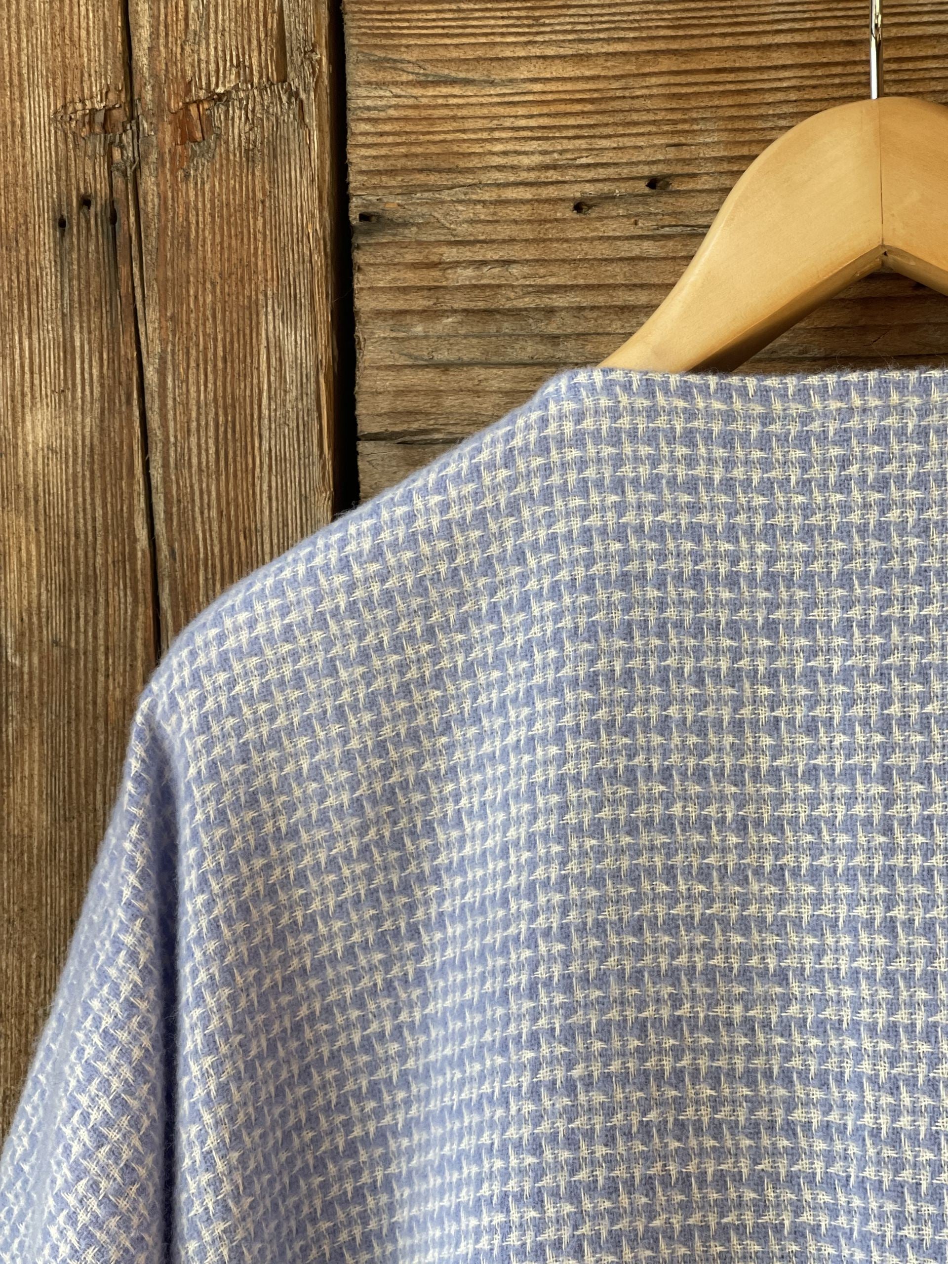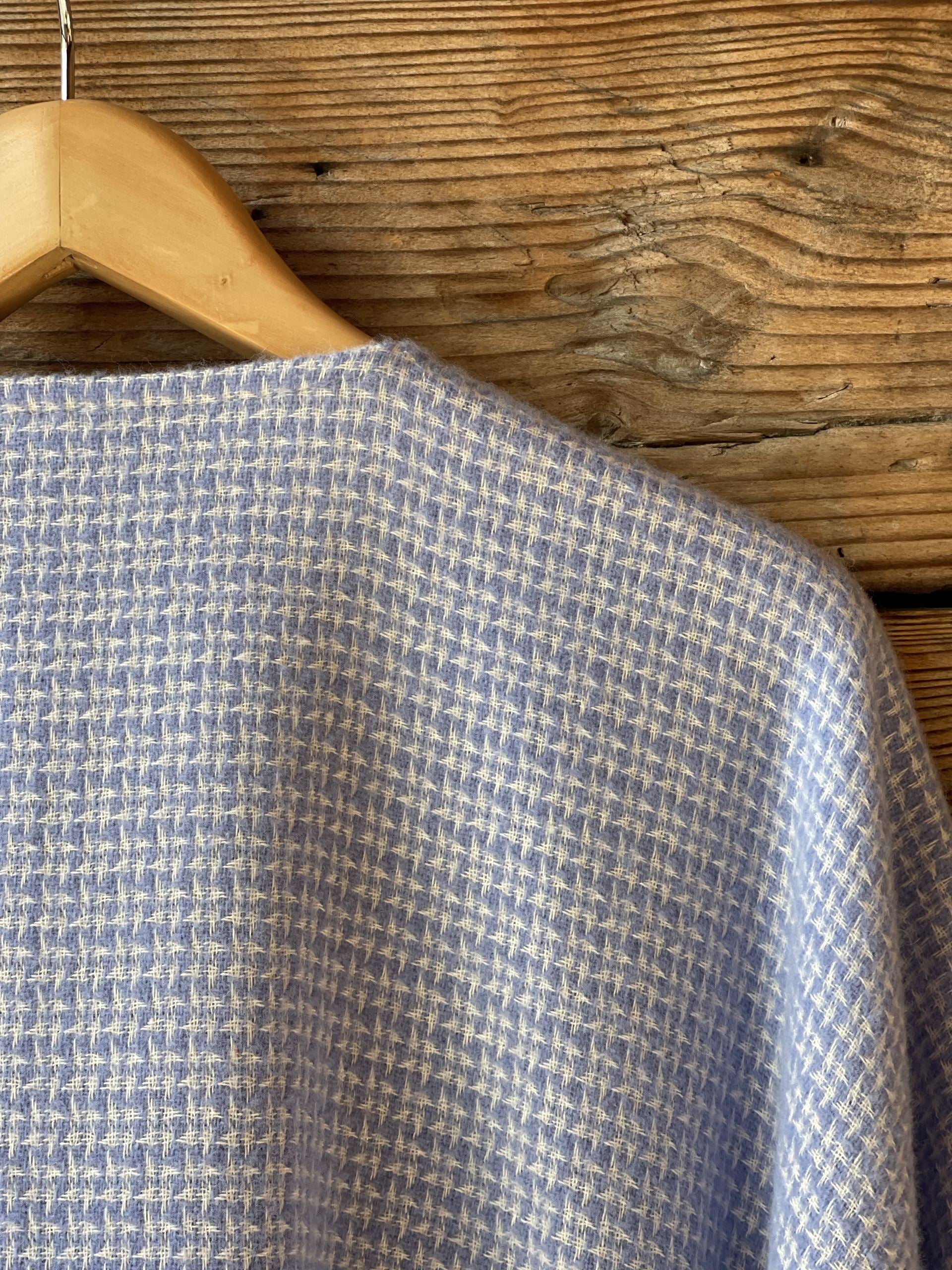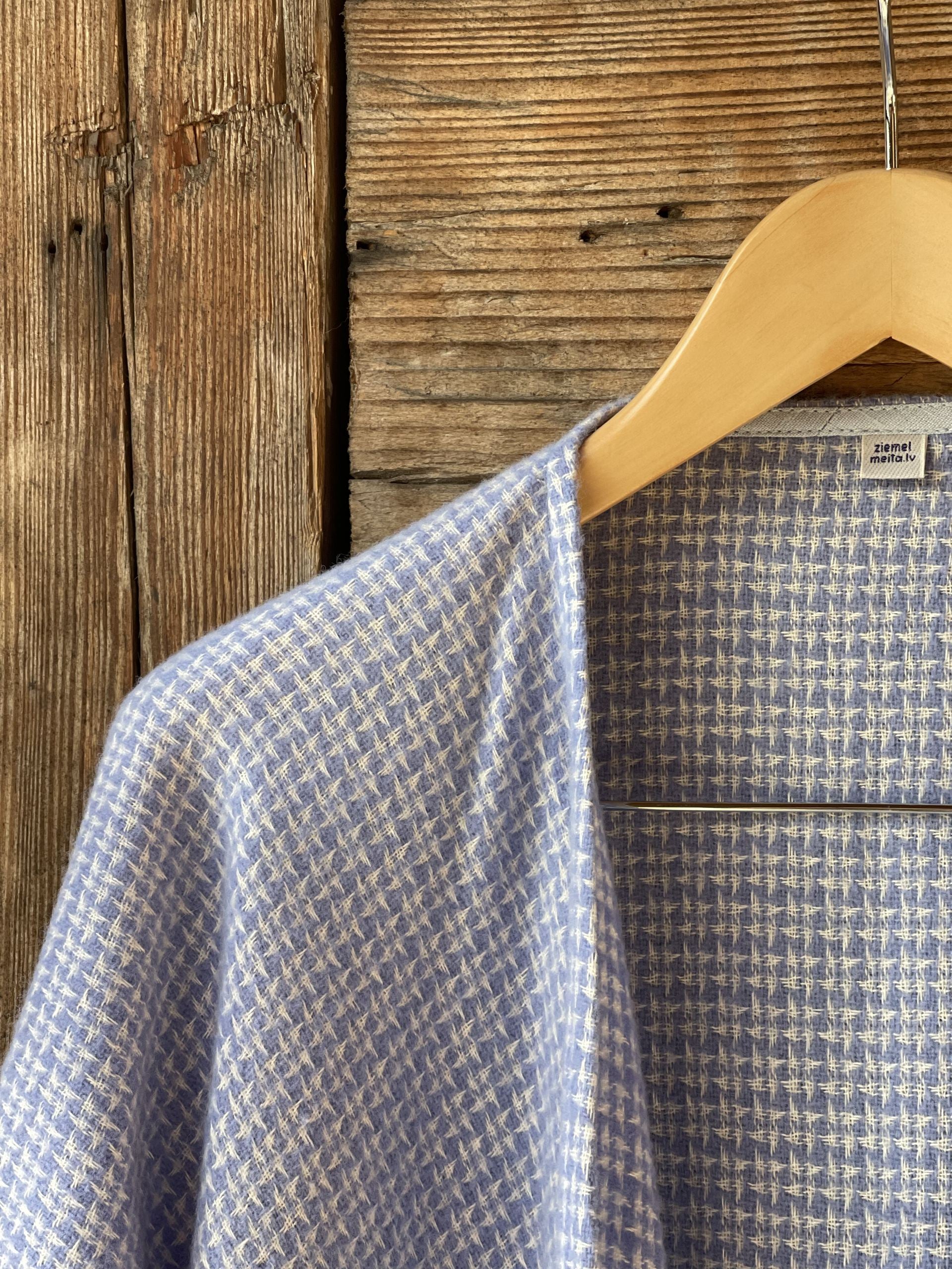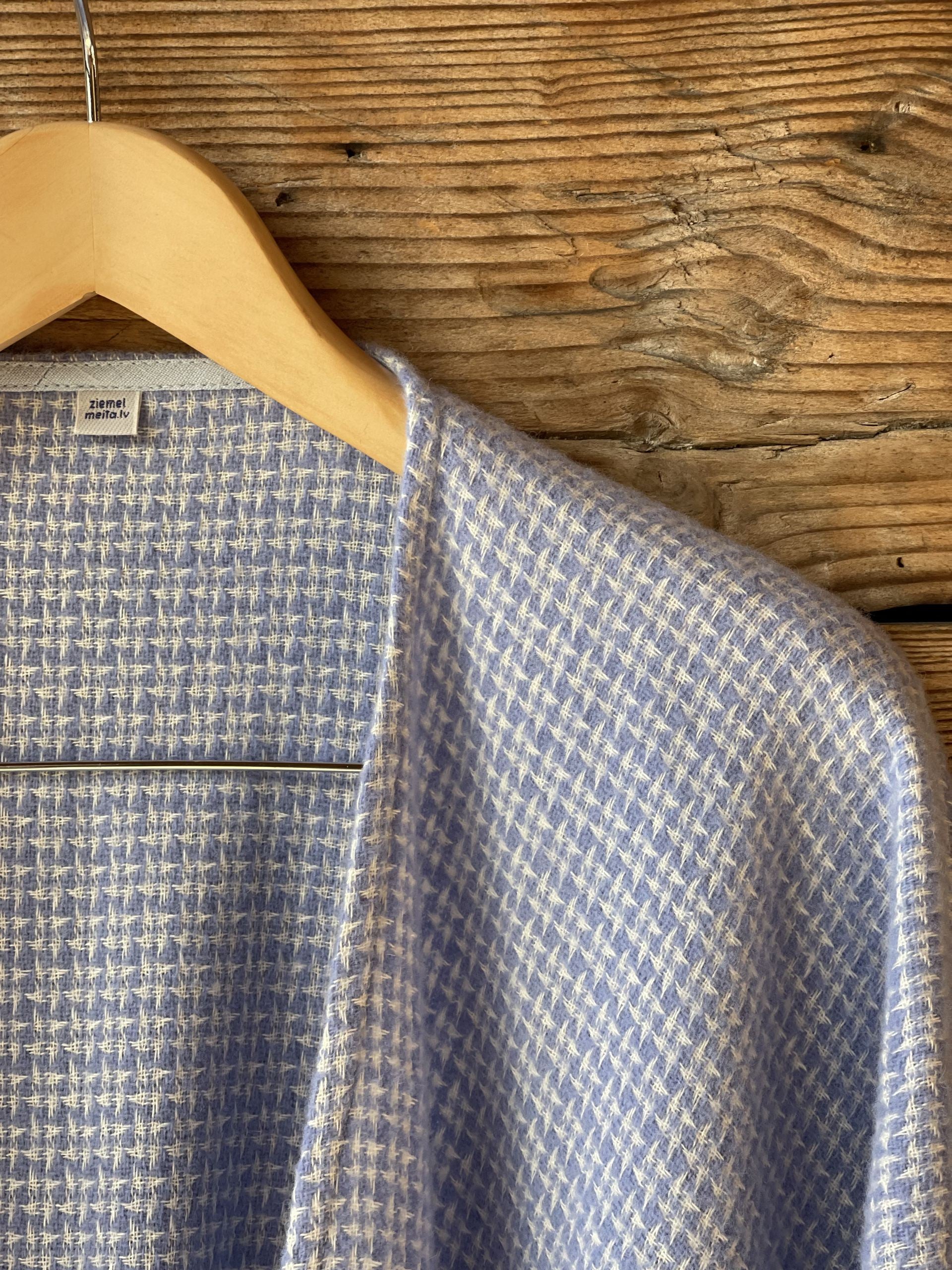 Gaiši zili/balts klasiska piegriezuma bambusa/aitas vilnas apmetnis