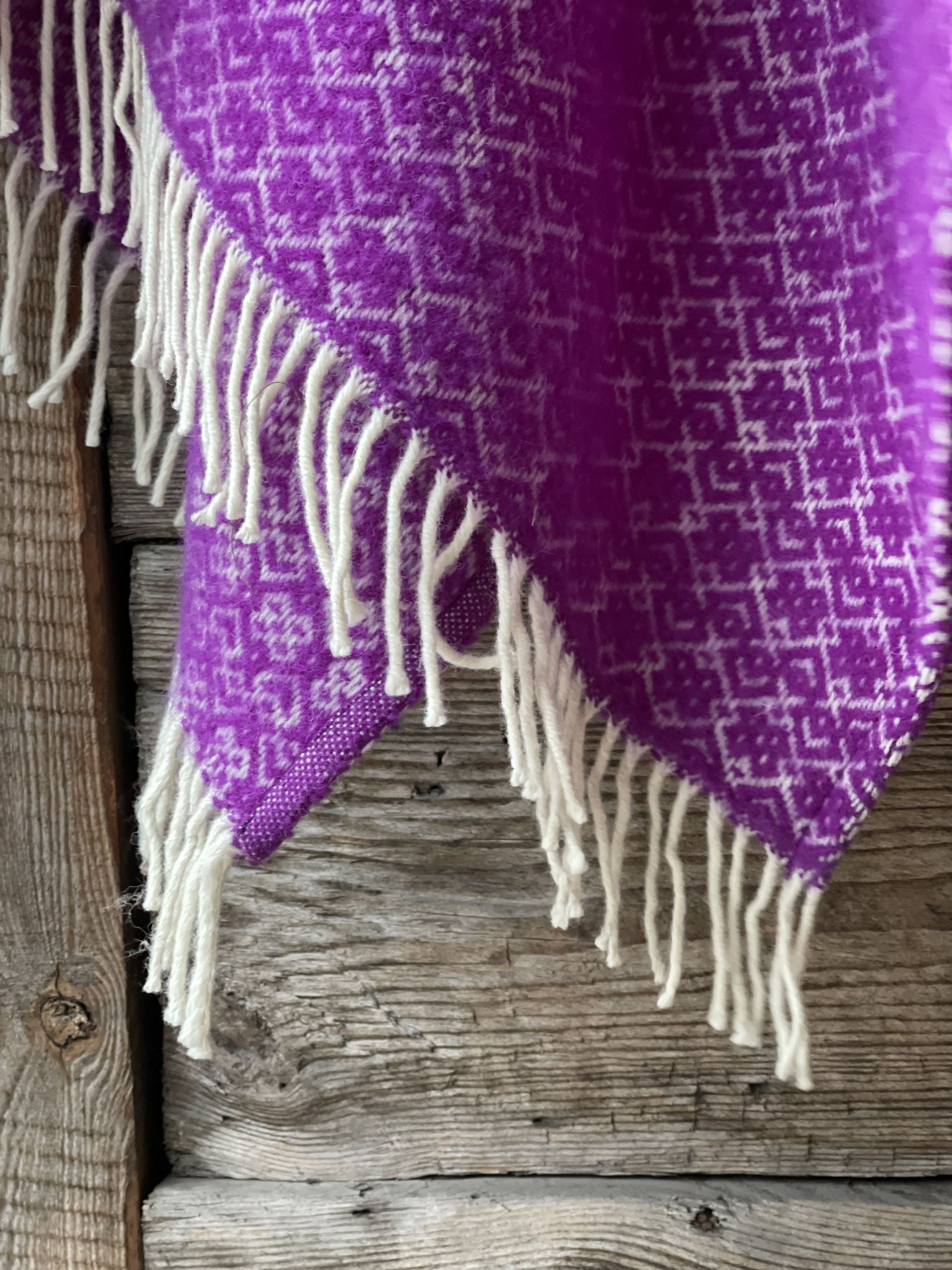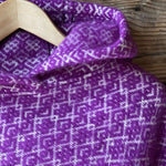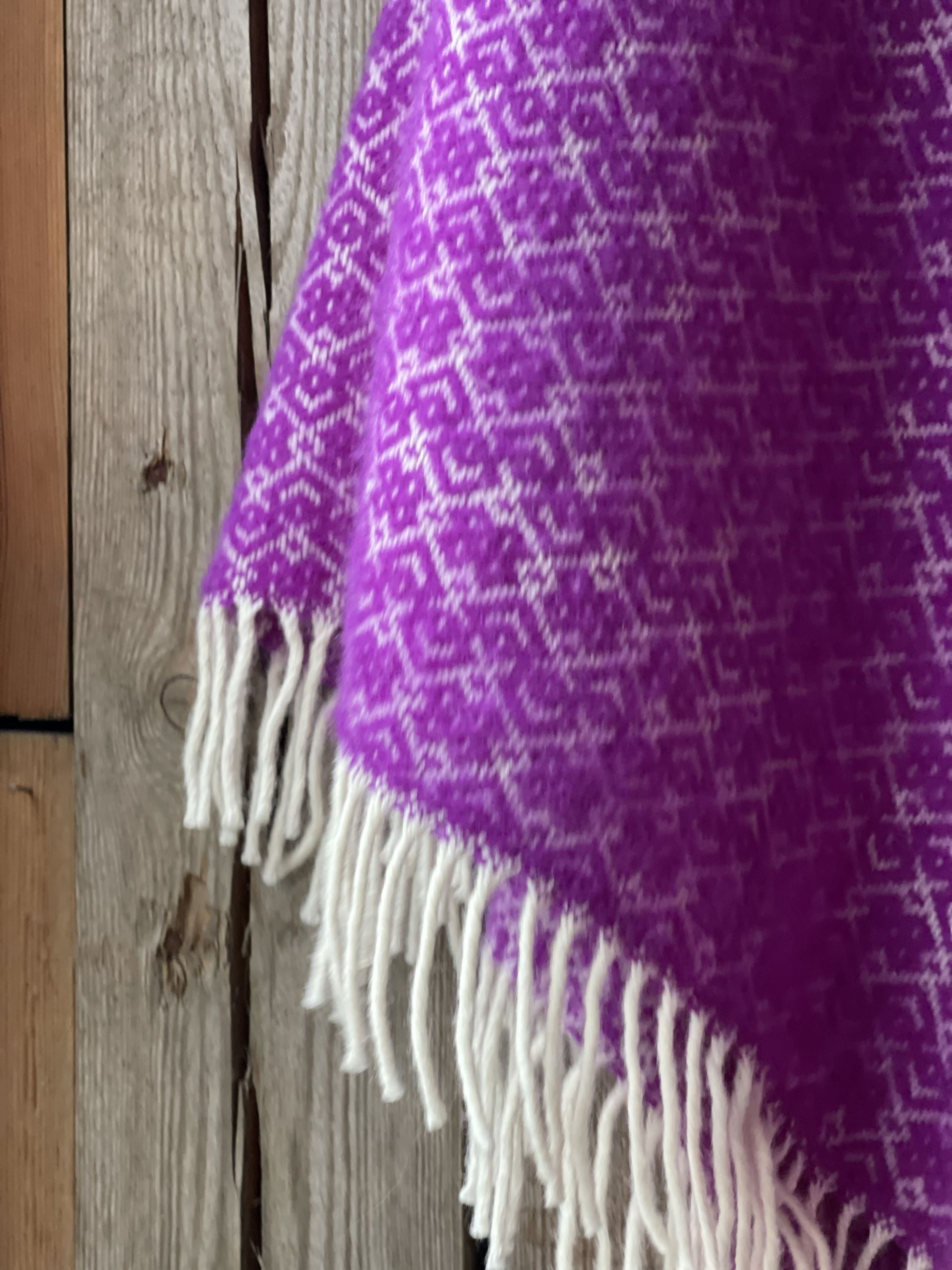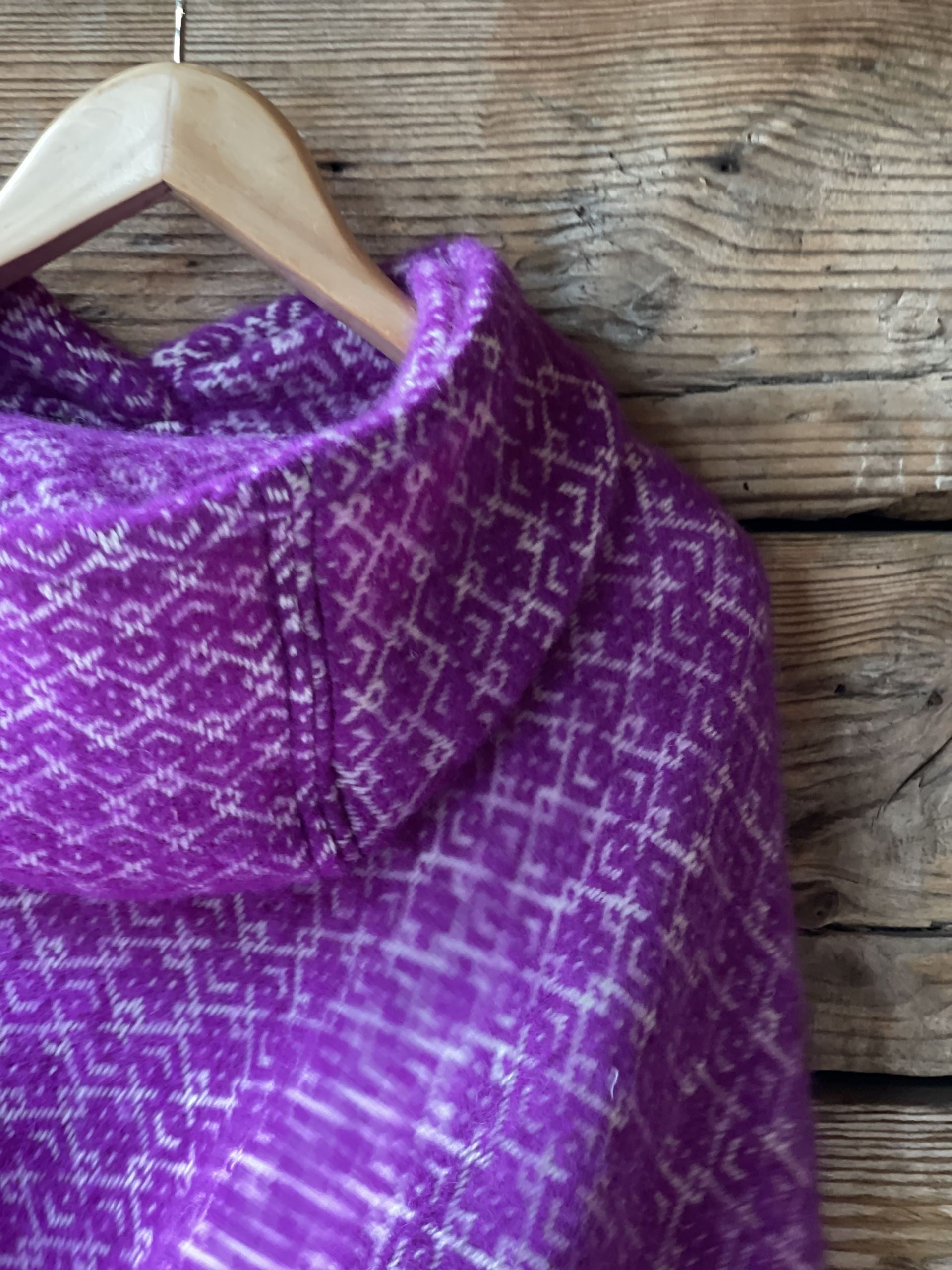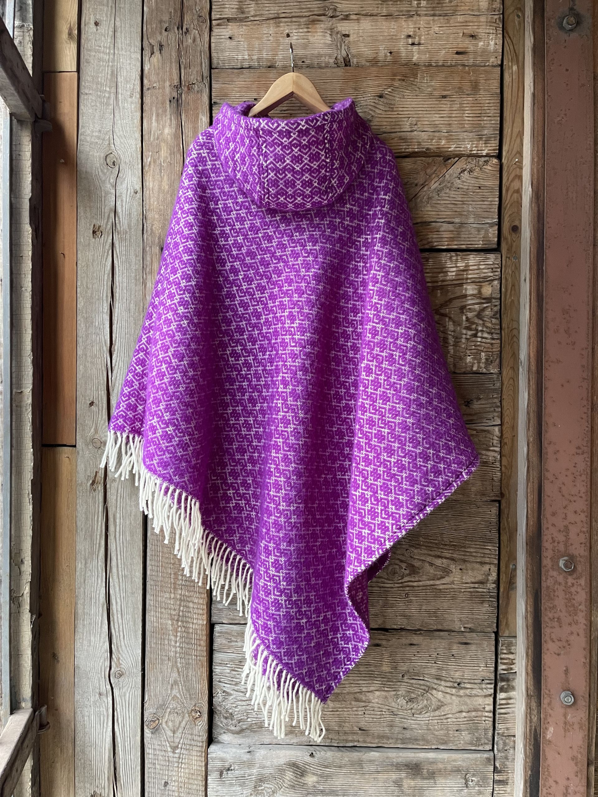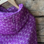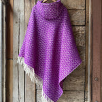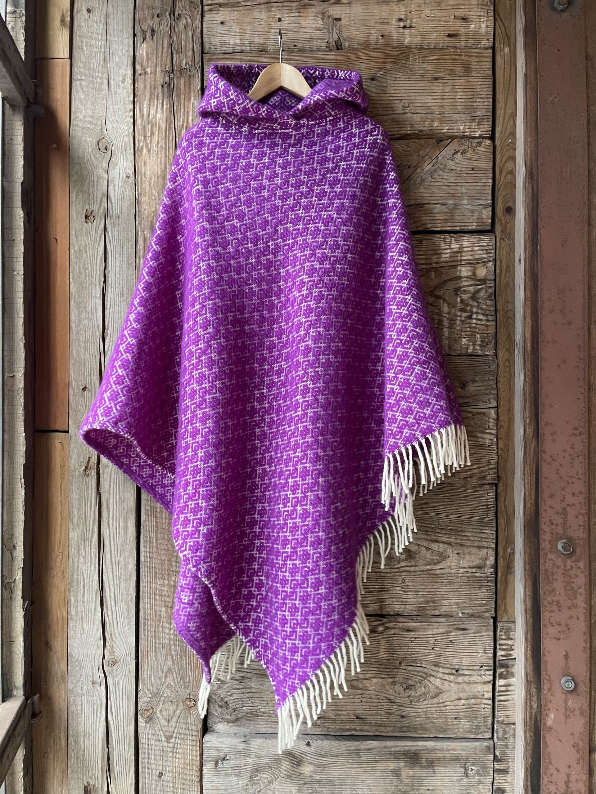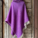 Koši lavandu violets garais pončo ar kapuci un baltām bārkstīm