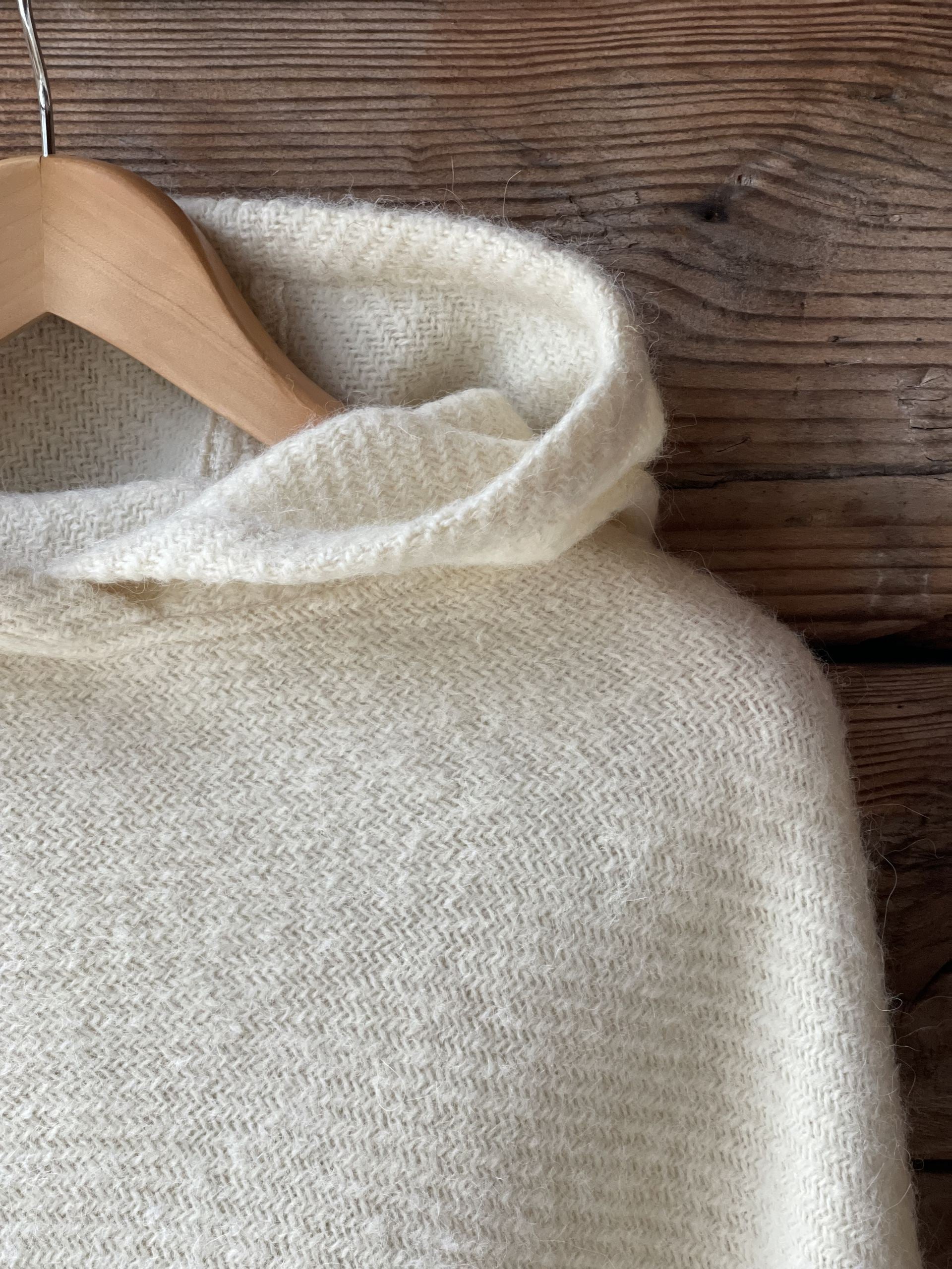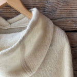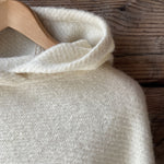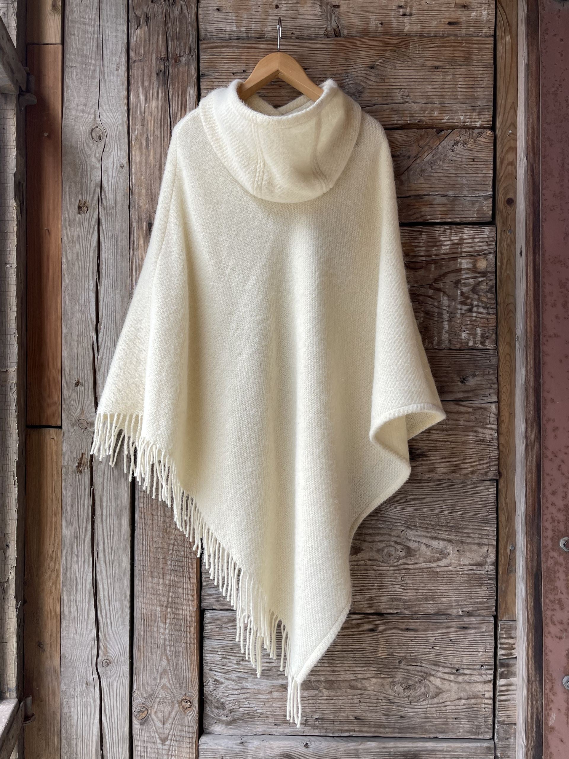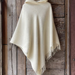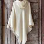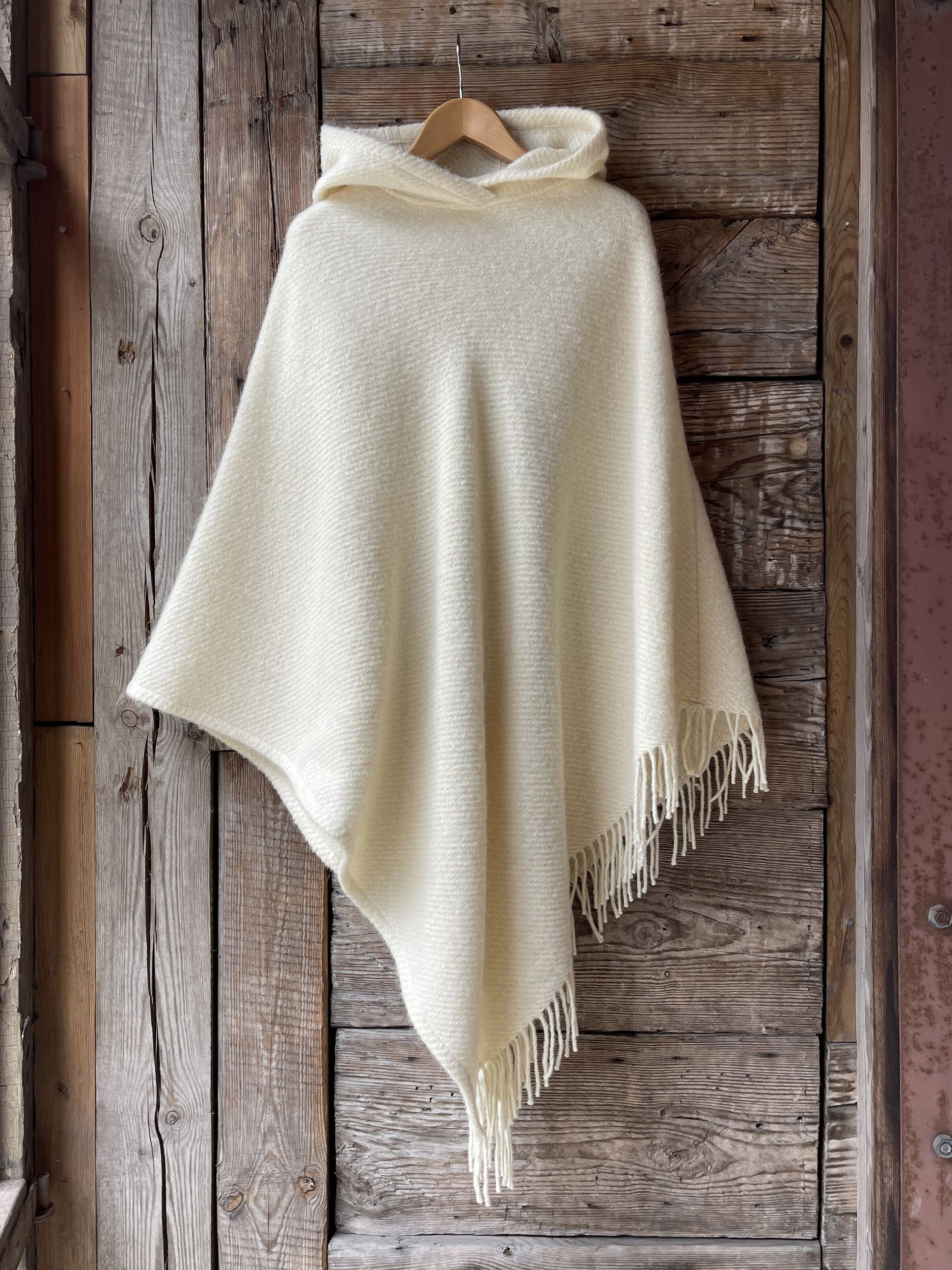 Krēmīgi balts vilnas pončo ar kapuci un bārkstīm