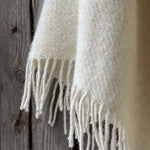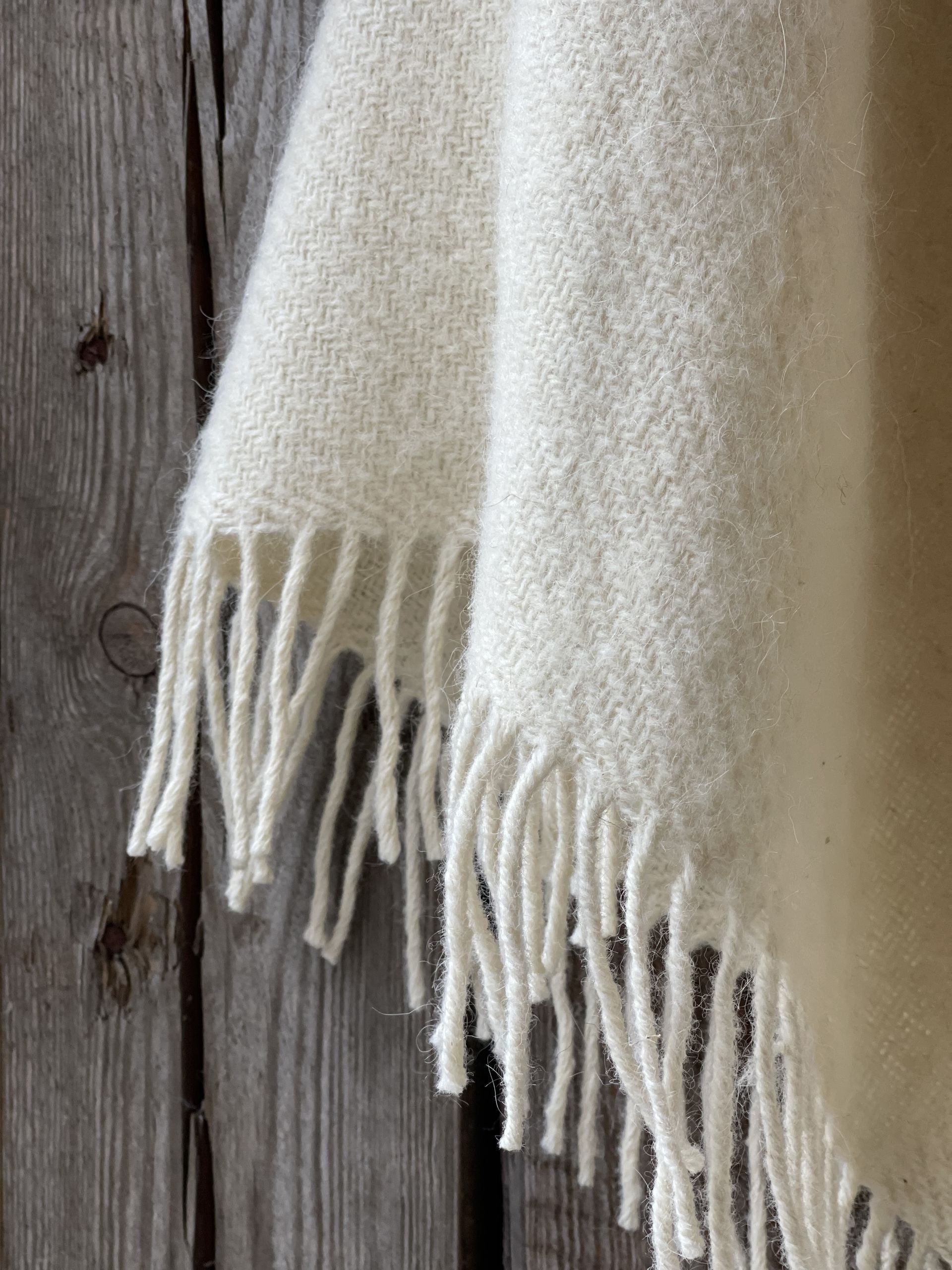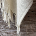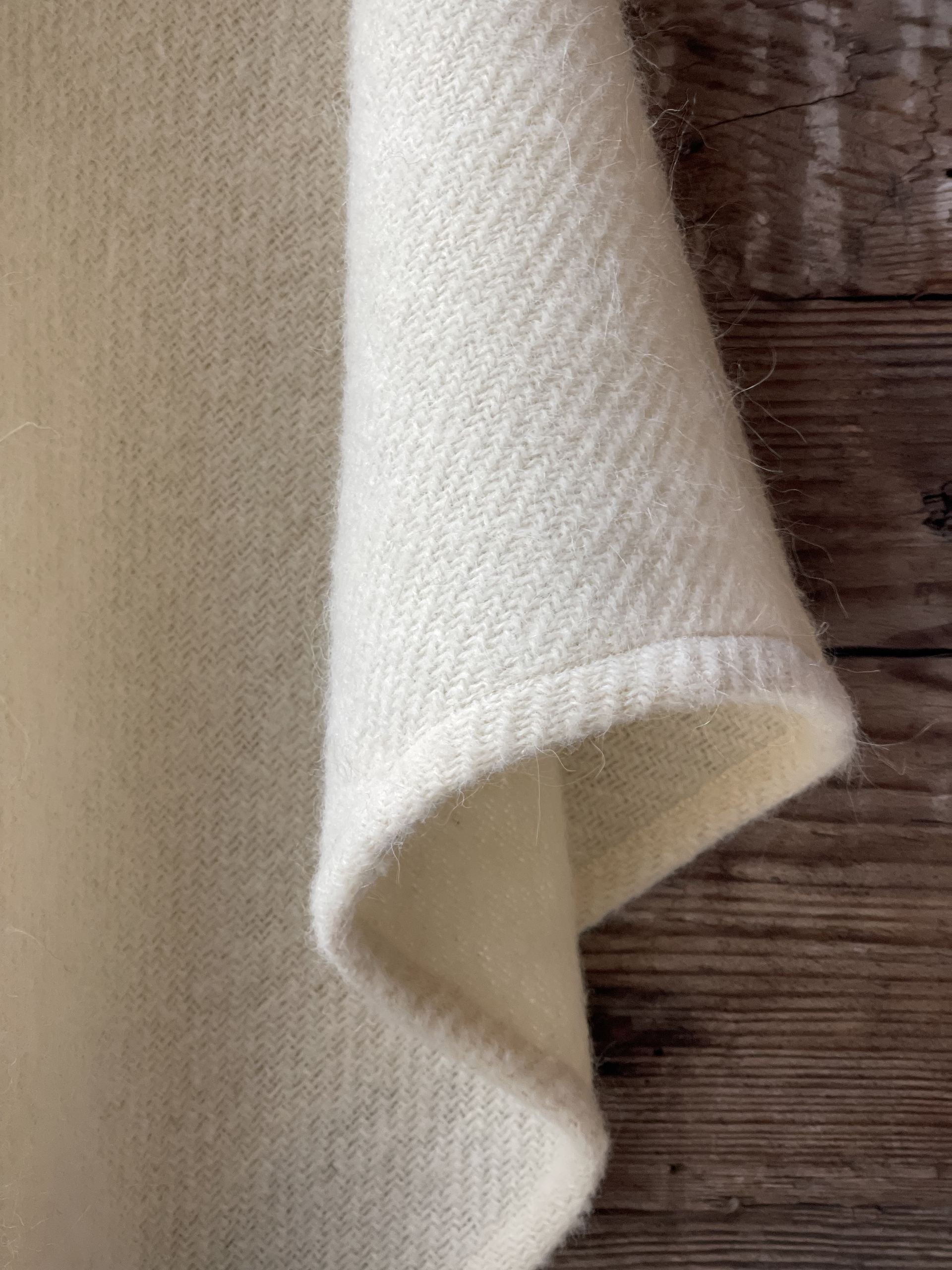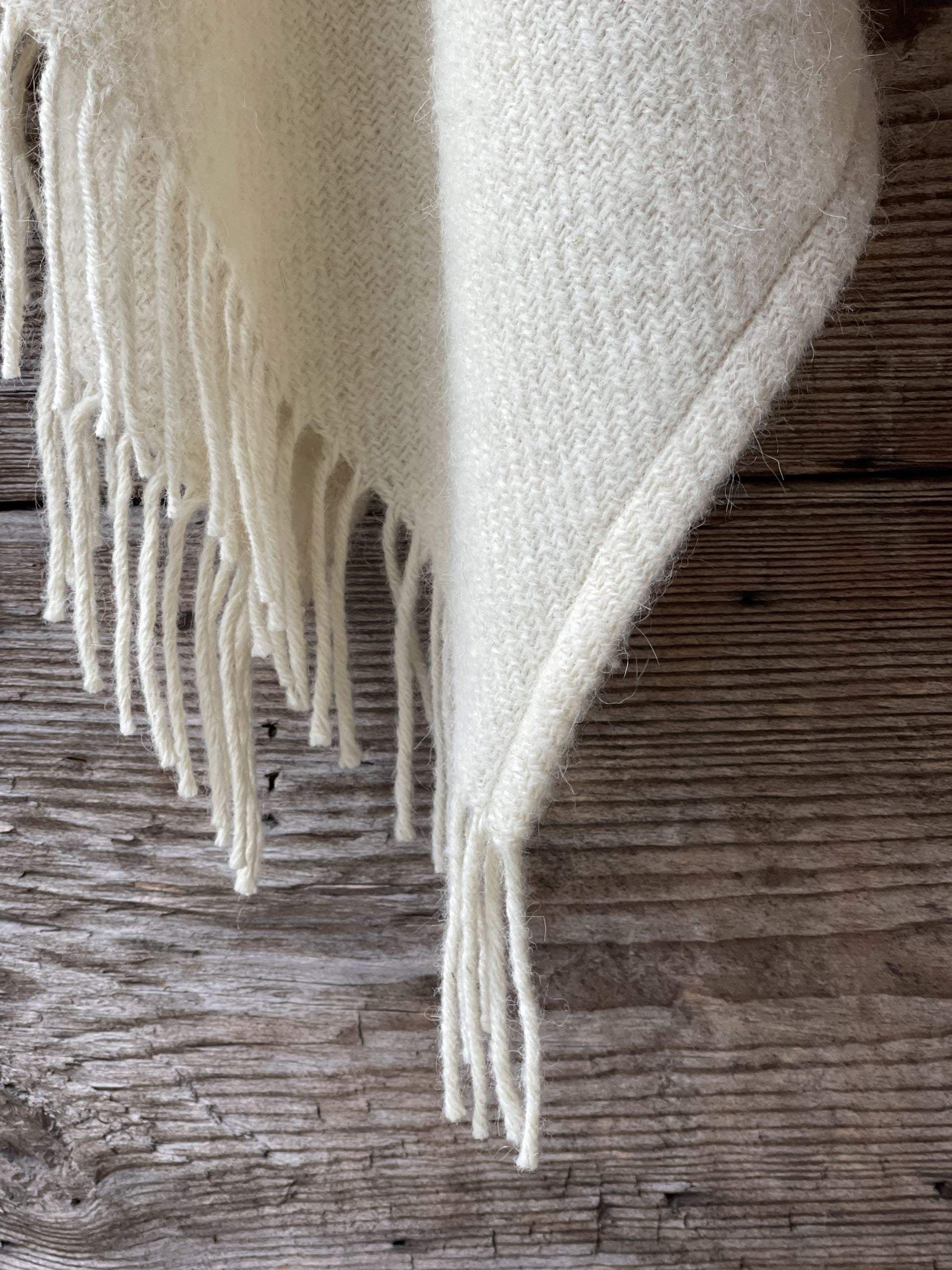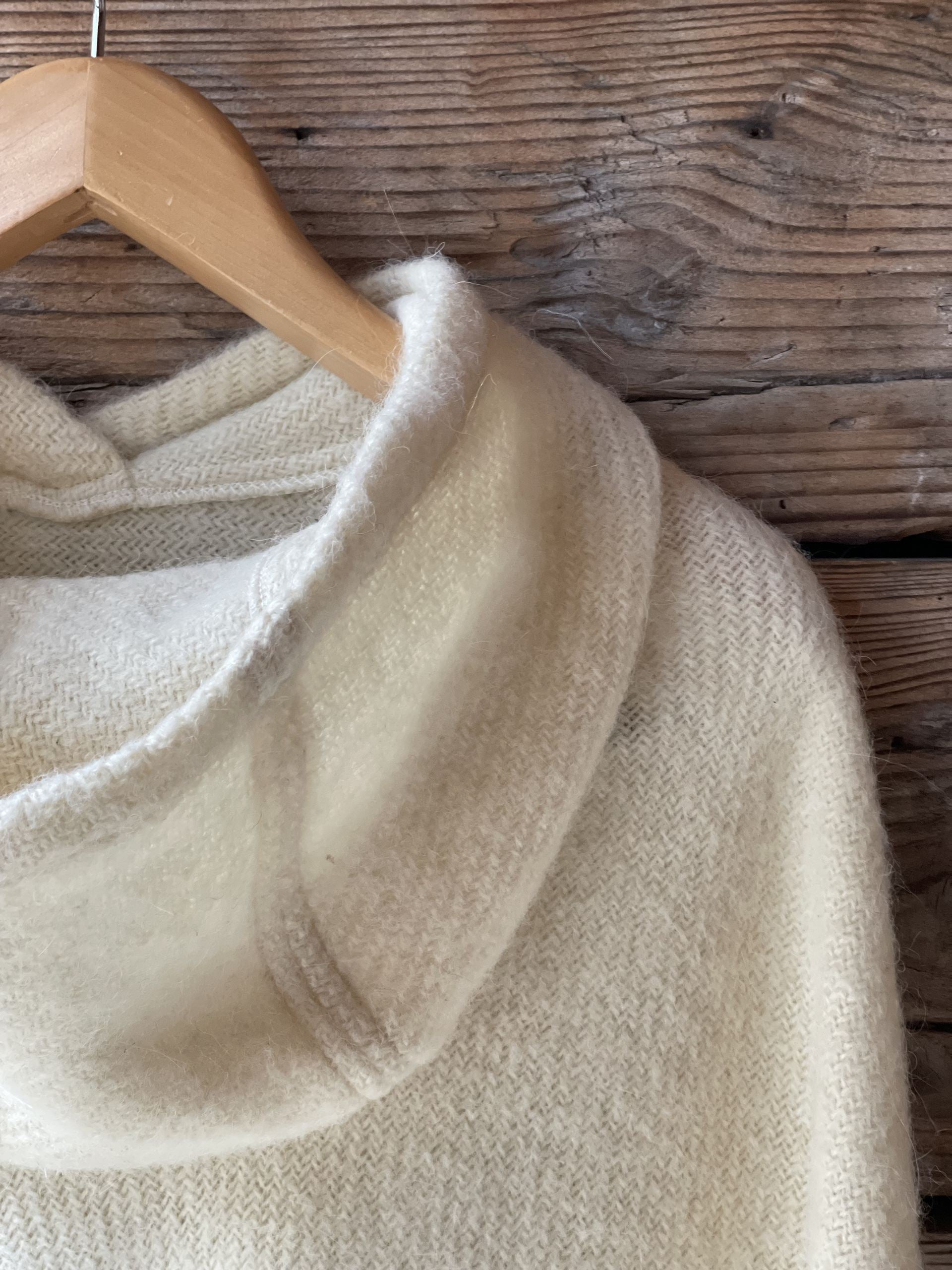 Krēmīgi balts vilnas pončo ar kapuci un bārkstīm