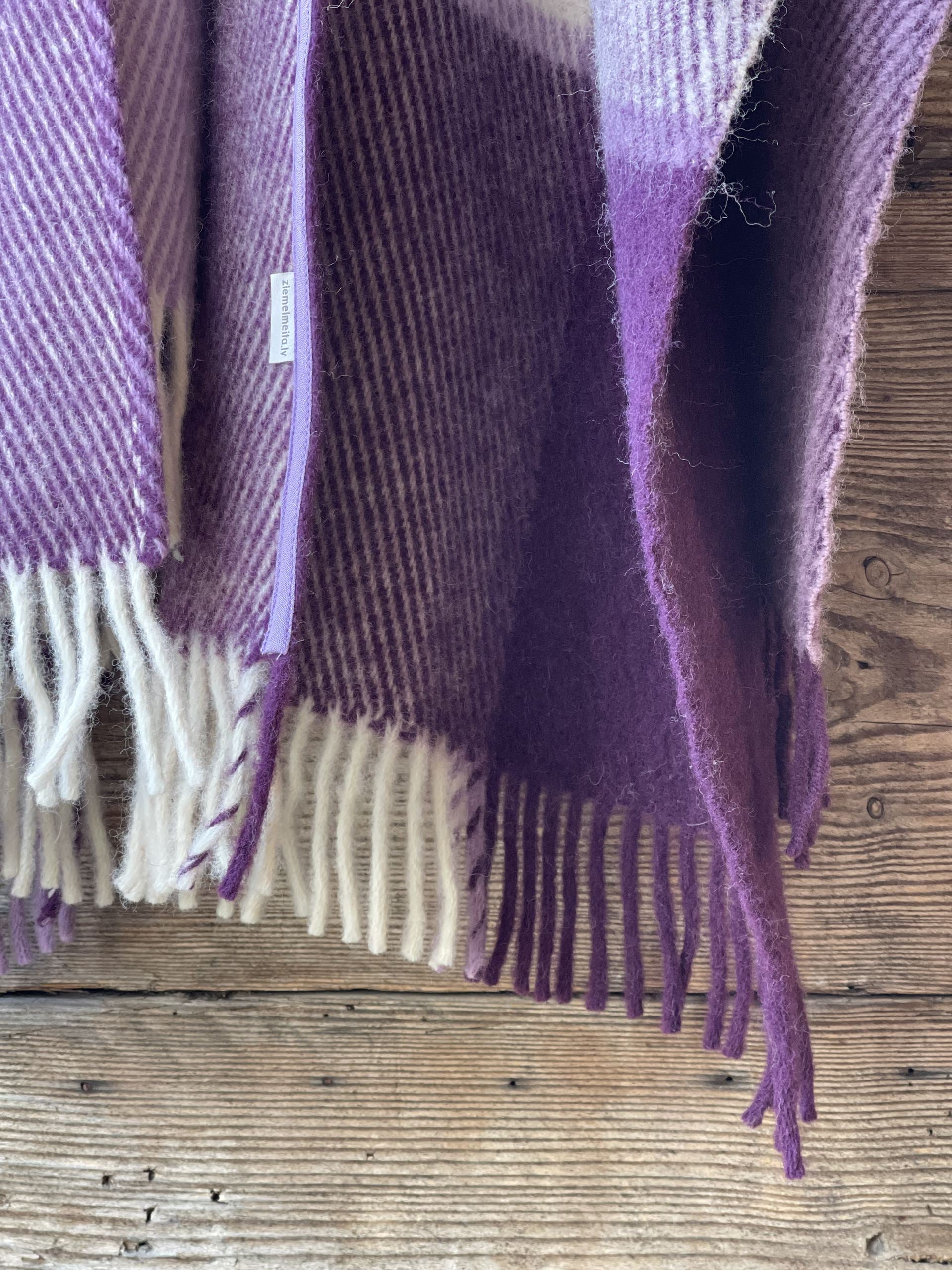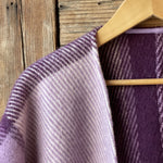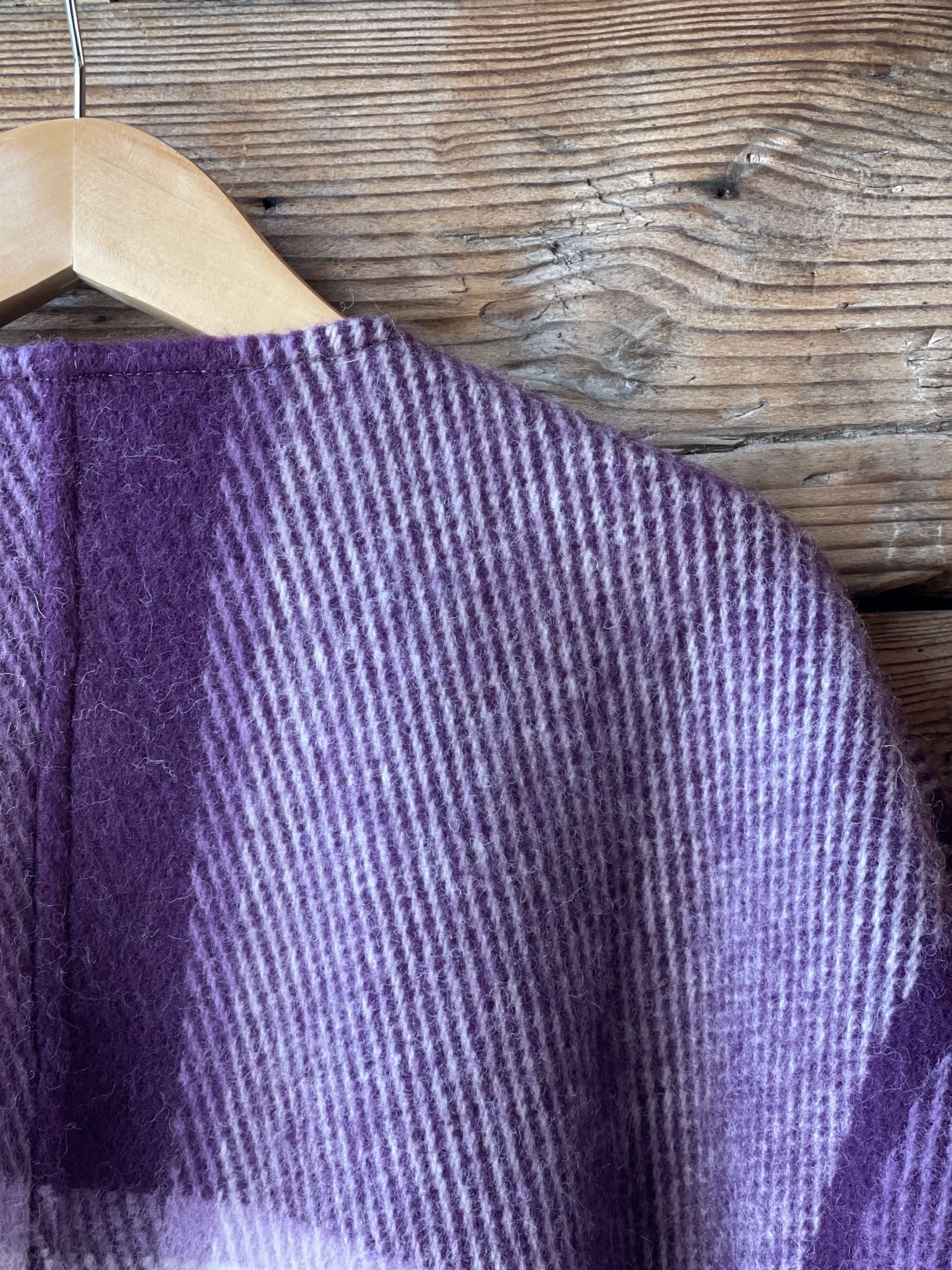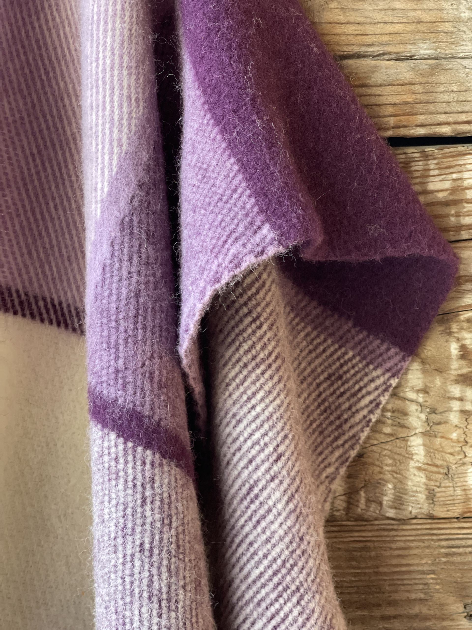 Lavandu violets/balti rūtains pončo - apmetnis ar bārkstīm no aitas vilnas auduma